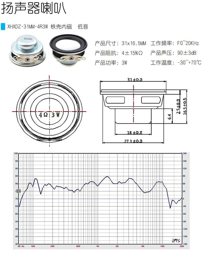 Altavoz Bluetooth multimedia de 4 ohmios y 3 W con woofer magnético interno, redondo, 4R3W, diámetro de 31 mm, pequeño y de frecuencia completa.