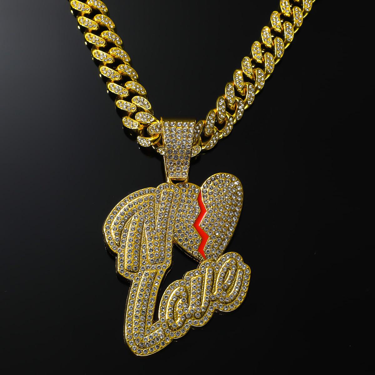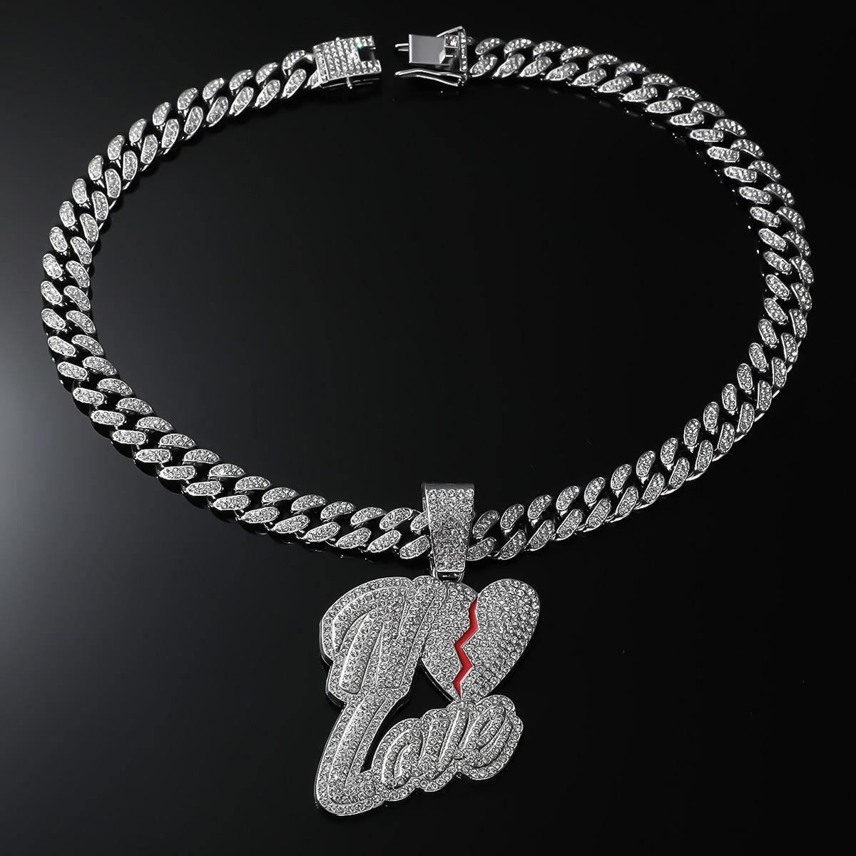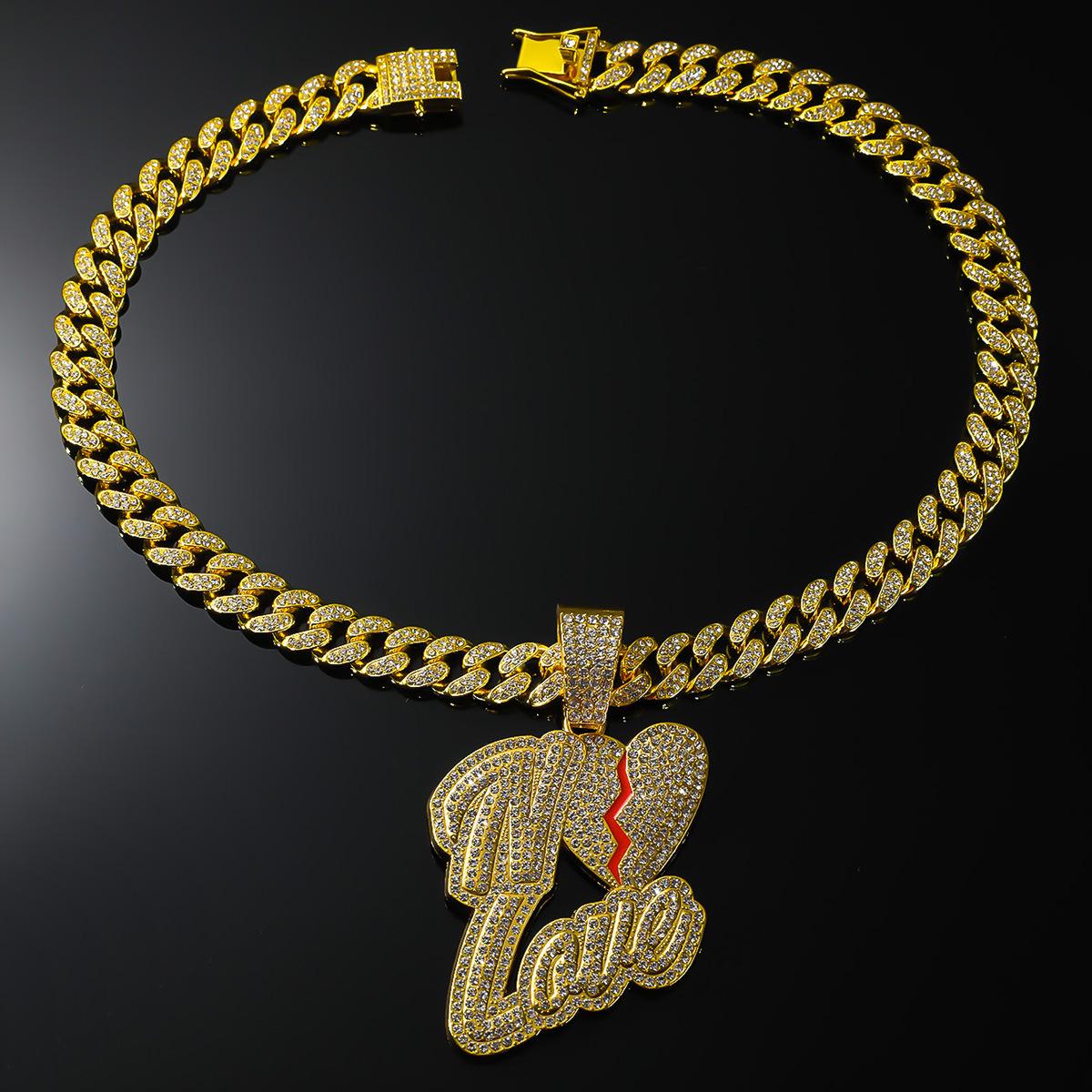 Colgante de letra de empalme creativo de hip-hop europeo y americano, colgante de collar de cadena cubana, accesorios de discoteca con diamantes llenos de estilo moderno