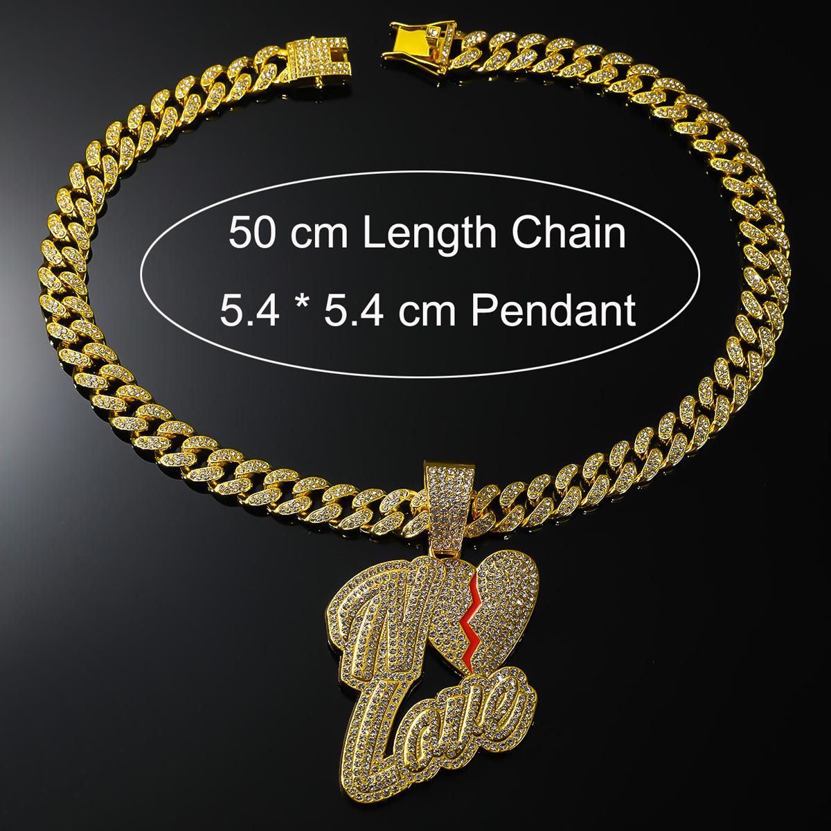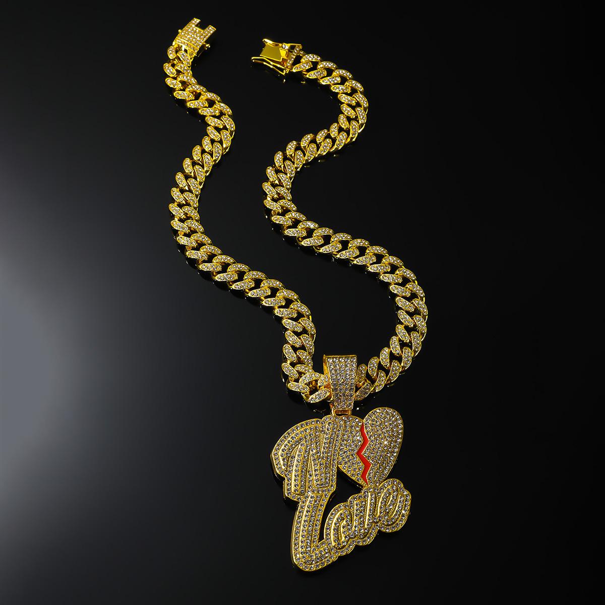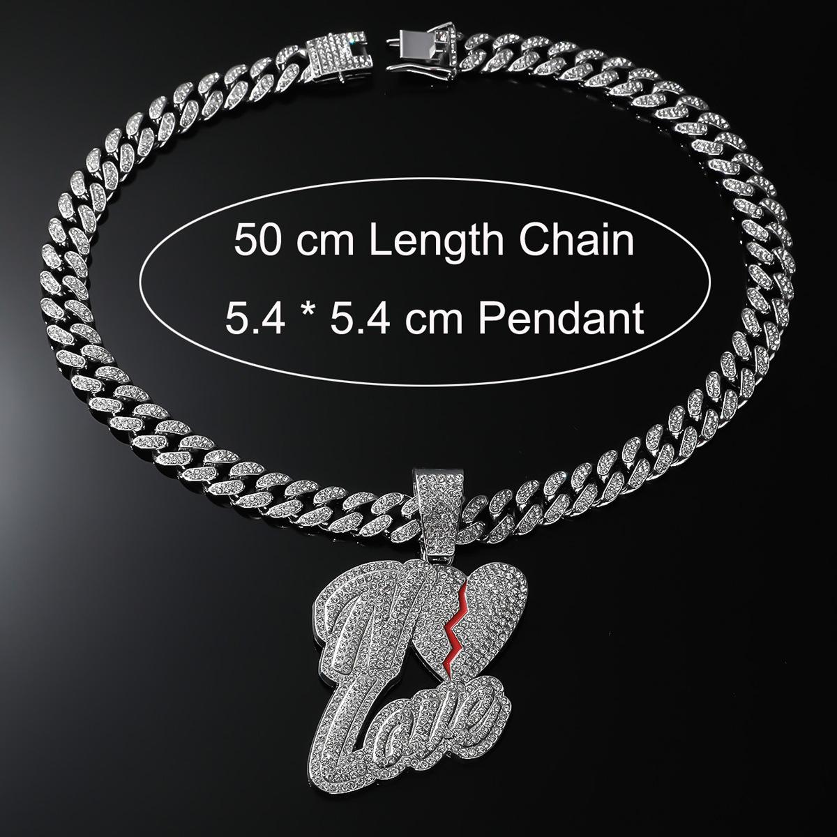 Collar dominante para hombre con colgante de letra de diamante completo, cadena cubana ancha, estilo hip hop, hip-hop, baile callejero europeo y americano