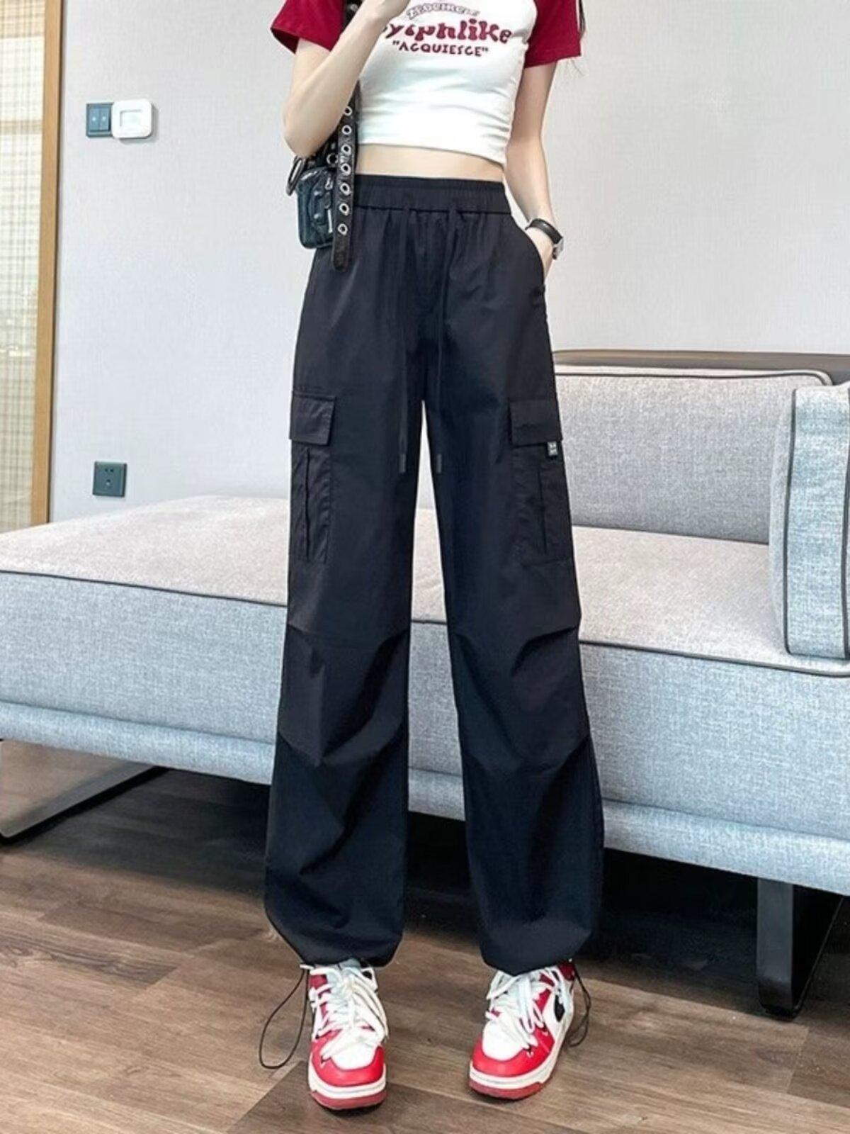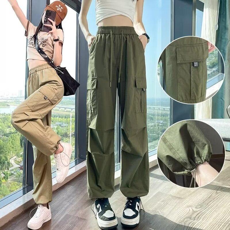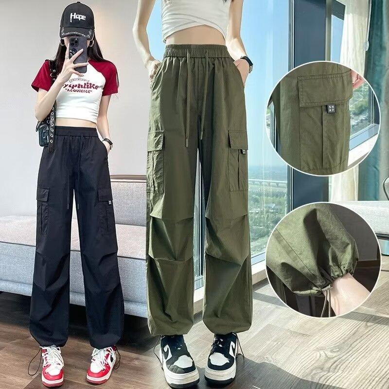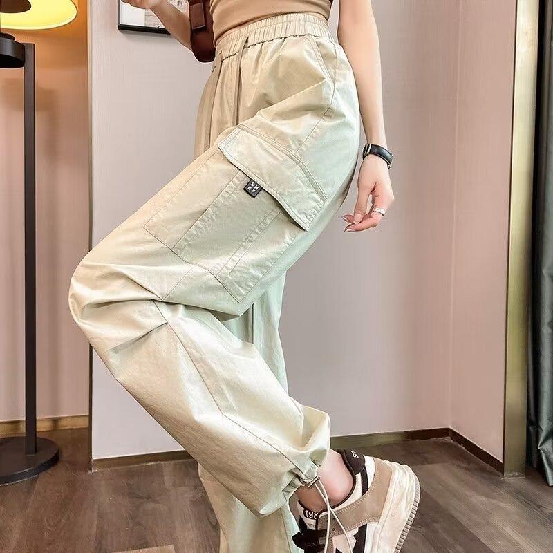 Pantalones de Herramientas de Pierna de Comercio Exterior Transfronterizo para Mujer Verano Delgado 2024 Nuevo Tiro Alto Sumergido Estilo Americano Harlan Pantalones Deportivos Trendy