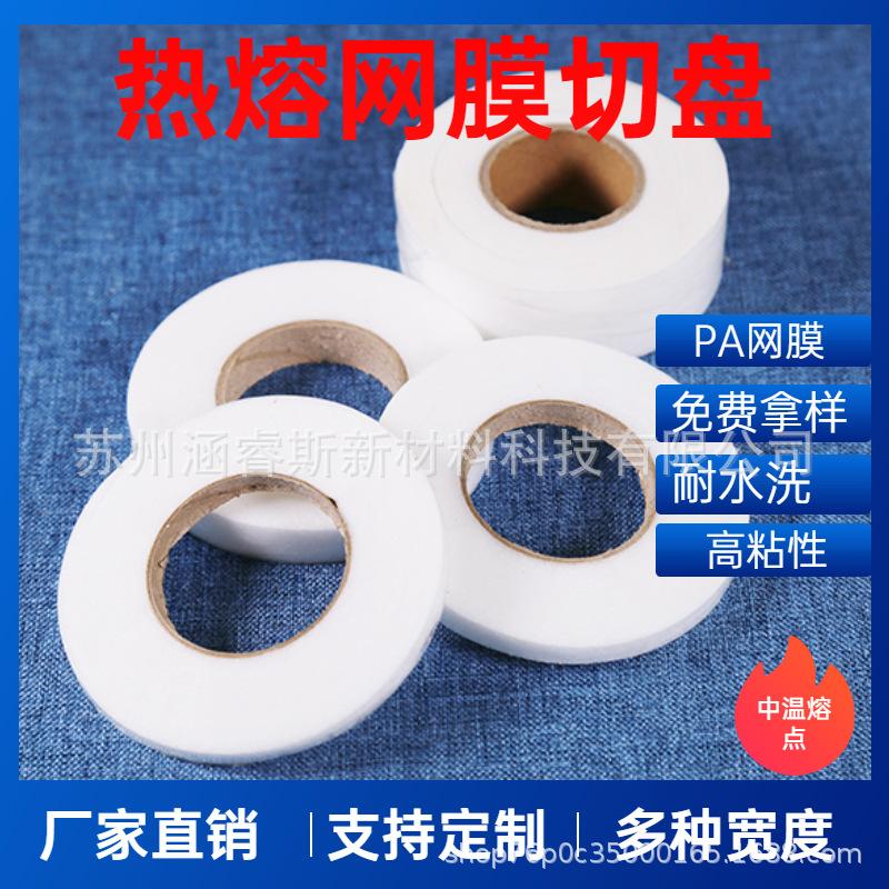 Venta directa de fábrica de revestimiento de doble cara con adhesivo termofusible no tejido, tira cortada de malla con adhesivo termofusible, revestimiento adhesivo de doble cara |