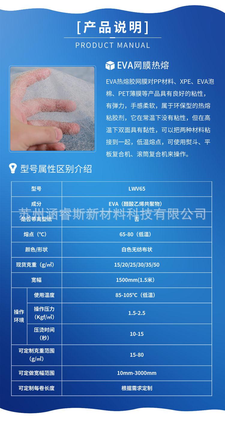 EVA es una película adhesiva termofusible sin papel desprendible. Si necesita una película adhesiva termofusible con papel desprendible, contáctenos. Ofrecemos personalización.