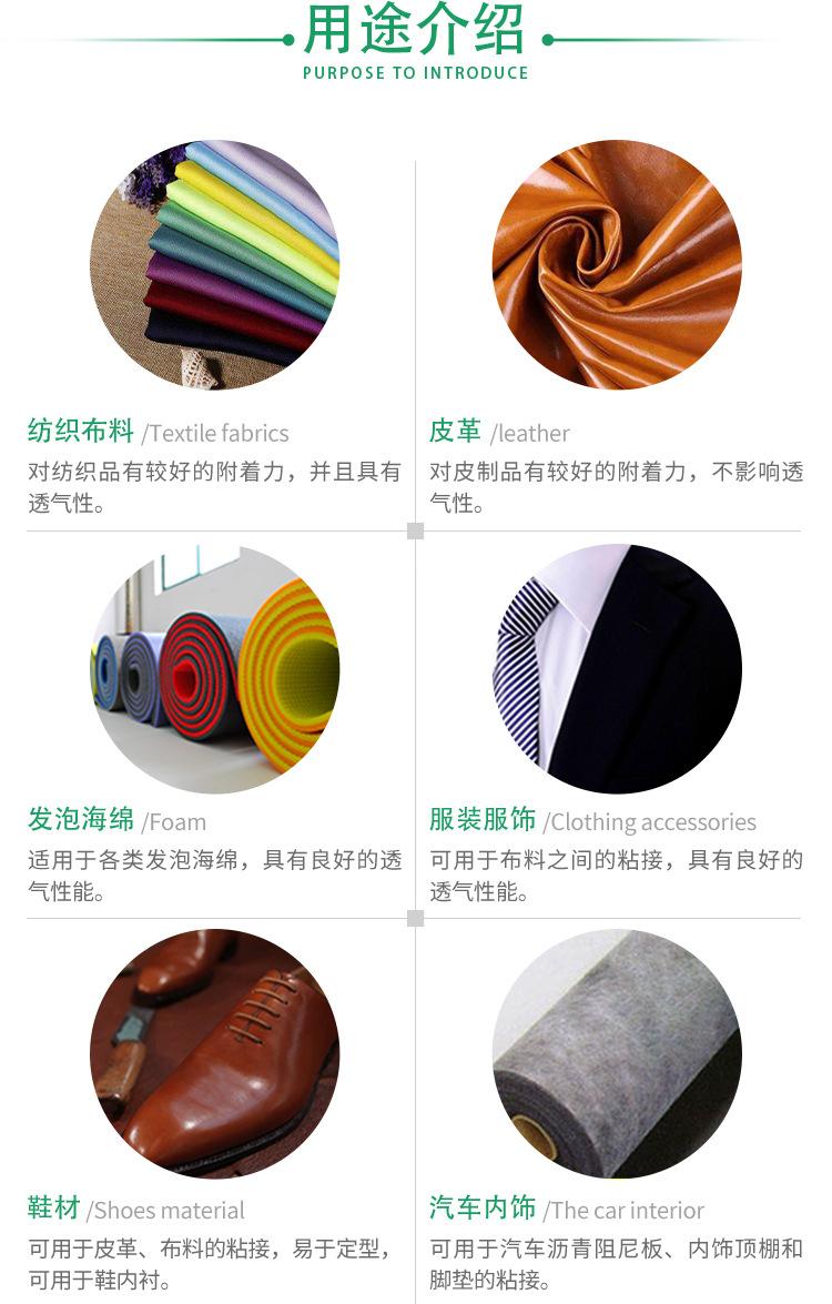 La malla adhesiva termofusible EVA se puede utilizar para unir, entre otros: telas no tejidas de polipropileno, esponjas, papel, algunos materiales de caucho y textiles, etc.