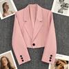Saco de Traje para Mujer Primavera y Otoño 2032 Nuevo Moda Coreana Negro Ultra Corto Un Botón Casual Combinable Occidental