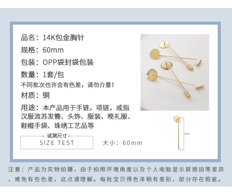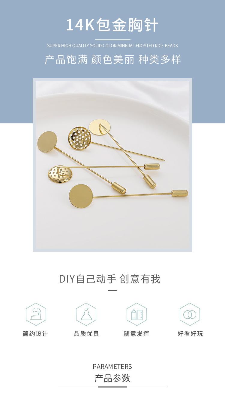 Broche de 9 palabras de oro 14K que conserva el color, alfiler largo, tapón de silicona de una palabra, broche, paquete de material para accesorios de joyería hechos a mano DIY