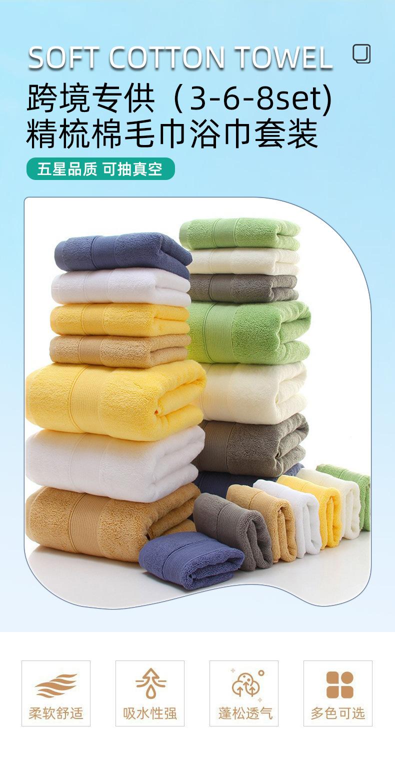 Juego de toallas de algodón exclusivo de Amazon, juego de toallas de baño combinadas de comercio exterior, juego de toallas de algodón peinado grueso de seis piezas
