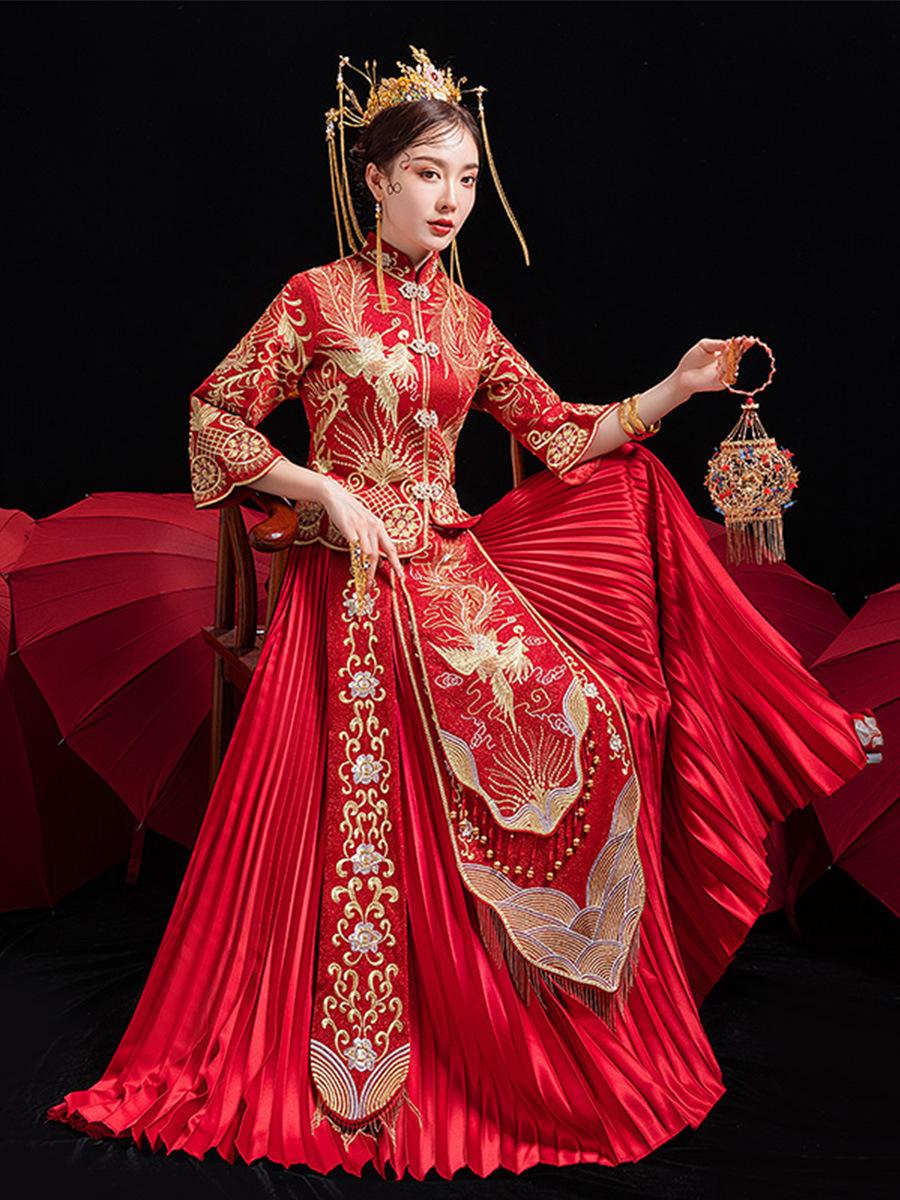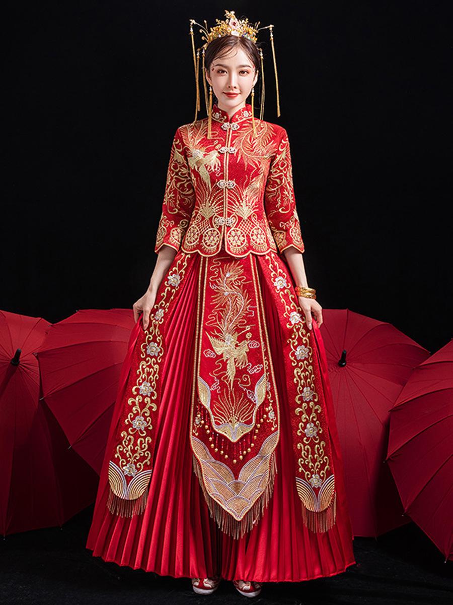 Vestido Xiuhe novia mujer 2020 nuevo vestido de novia chino vestido de novia corona de fénix Xiaxiao vestido de novia sencillo y generoso brindis