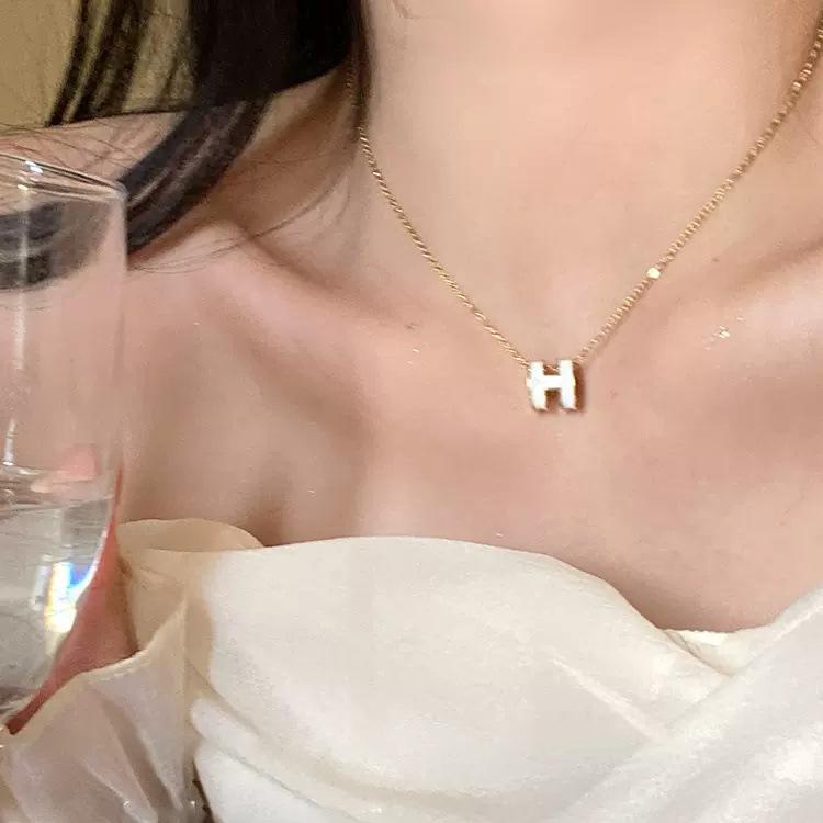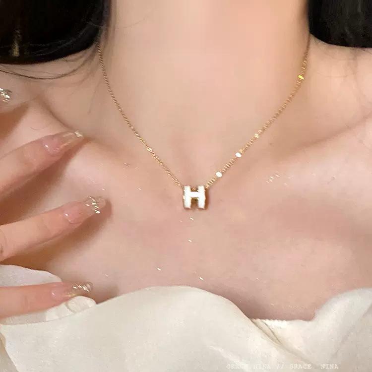 Collar de acero de titanio con letra H para mujer, elegante cadena de lana combinable con todo, cadena para clavícula, accesorios populares de celebridades de Internet, cadena de collar
