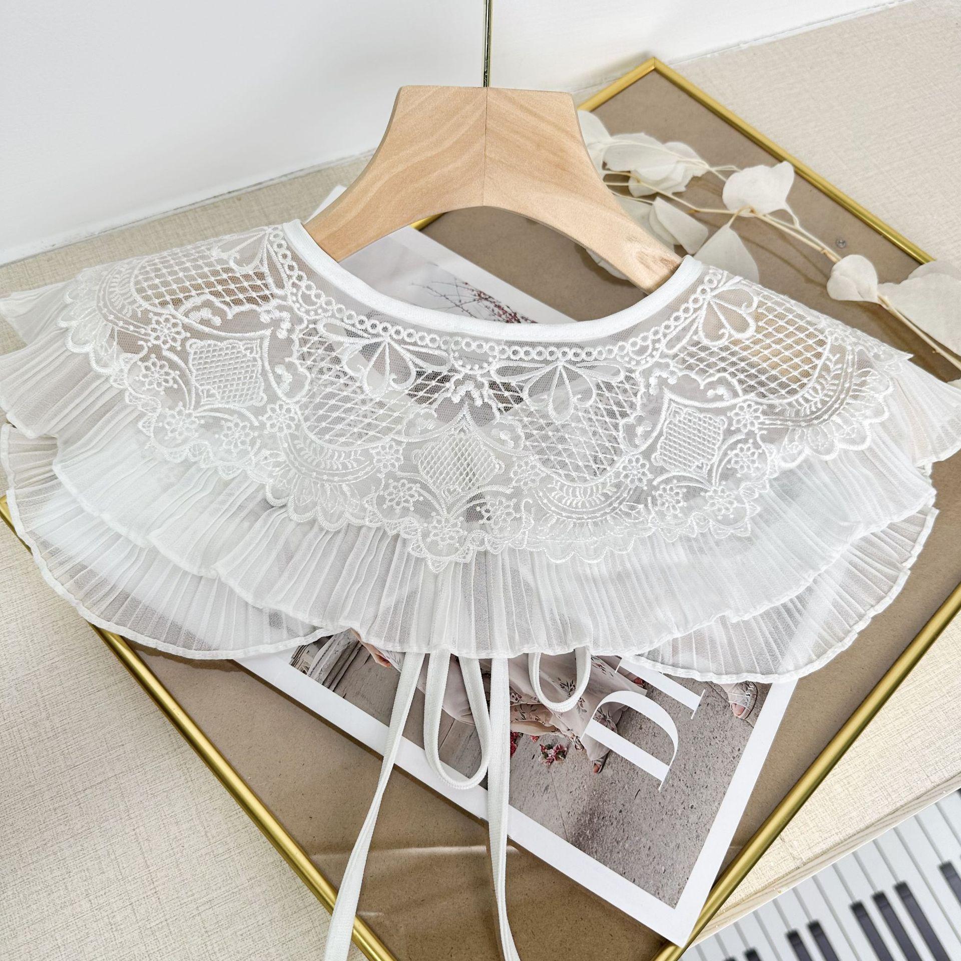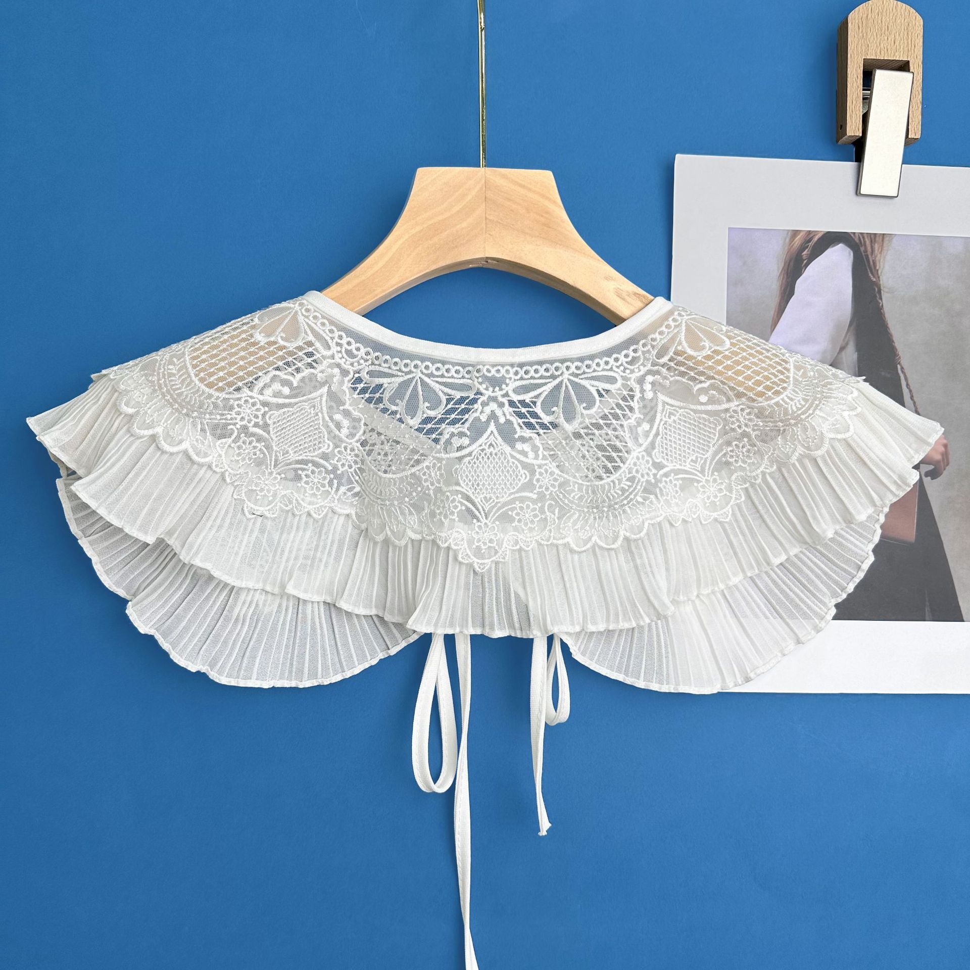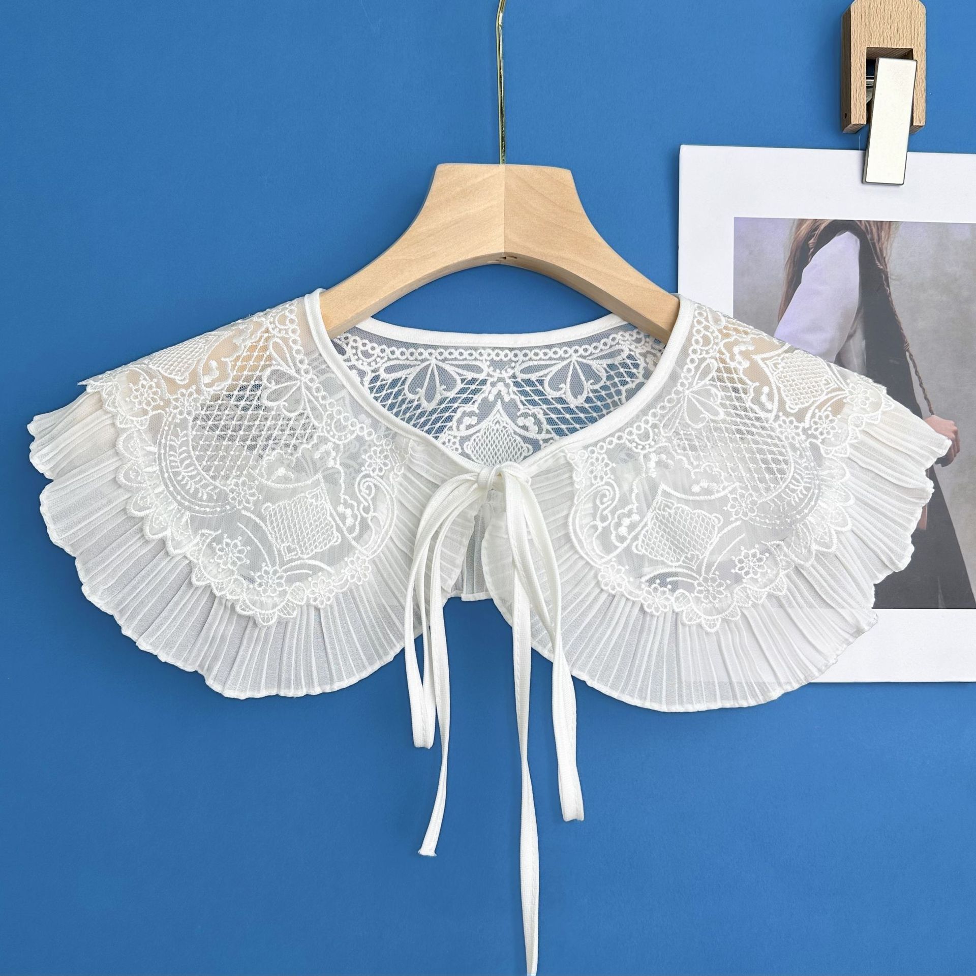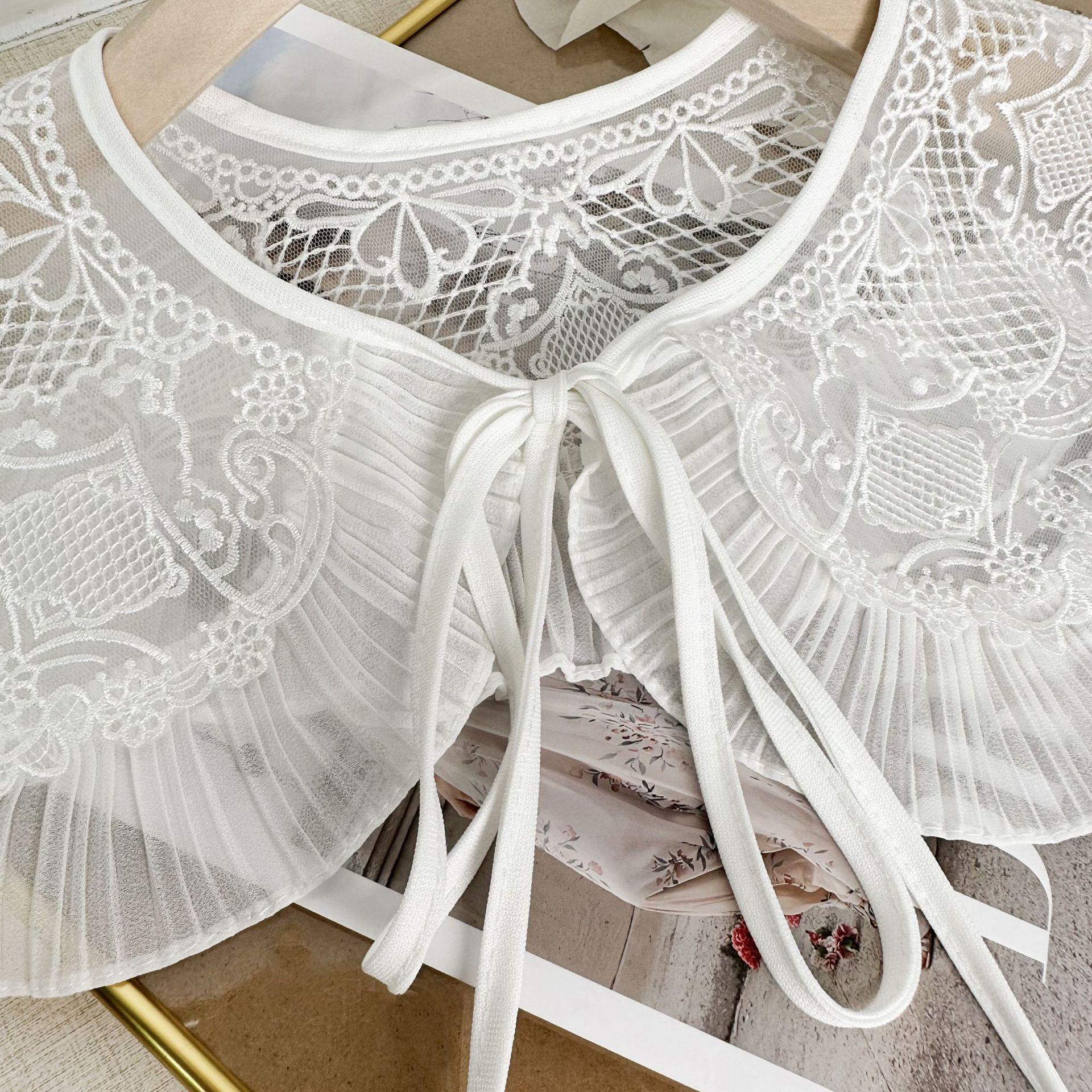 Falda estilo coreano de gasa bordada con volantes y cuello falso para mujer, cheongsam, cuello decorativo, chal