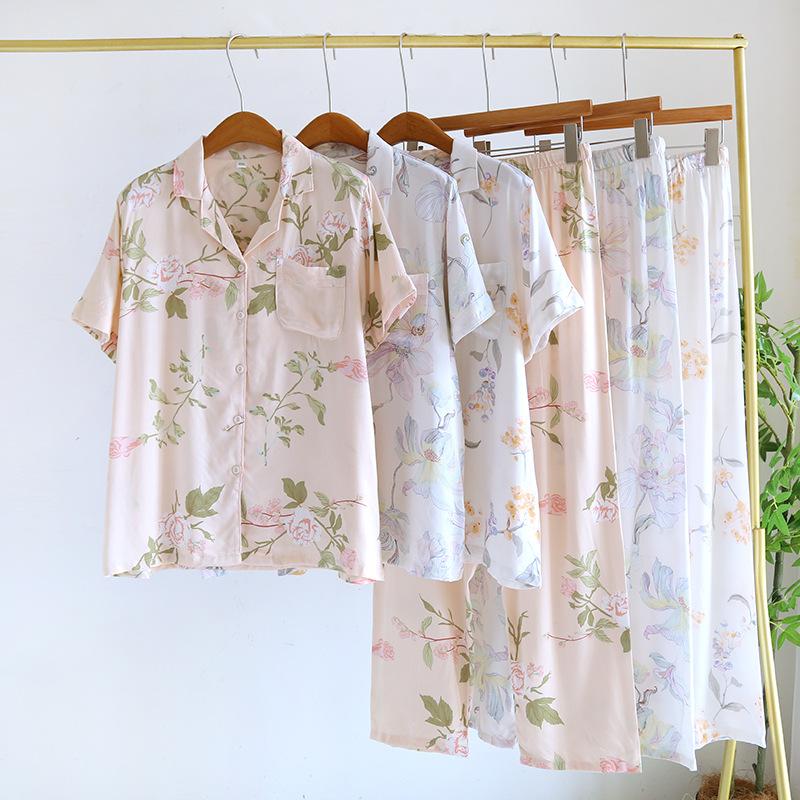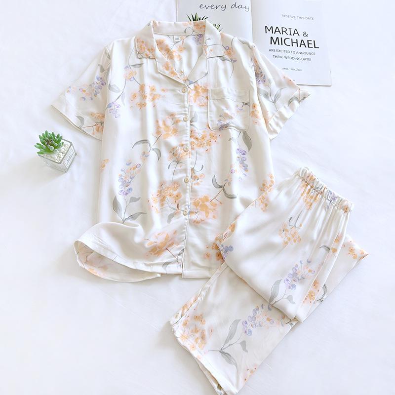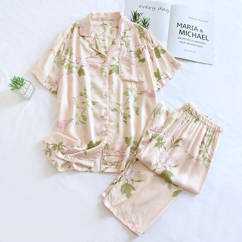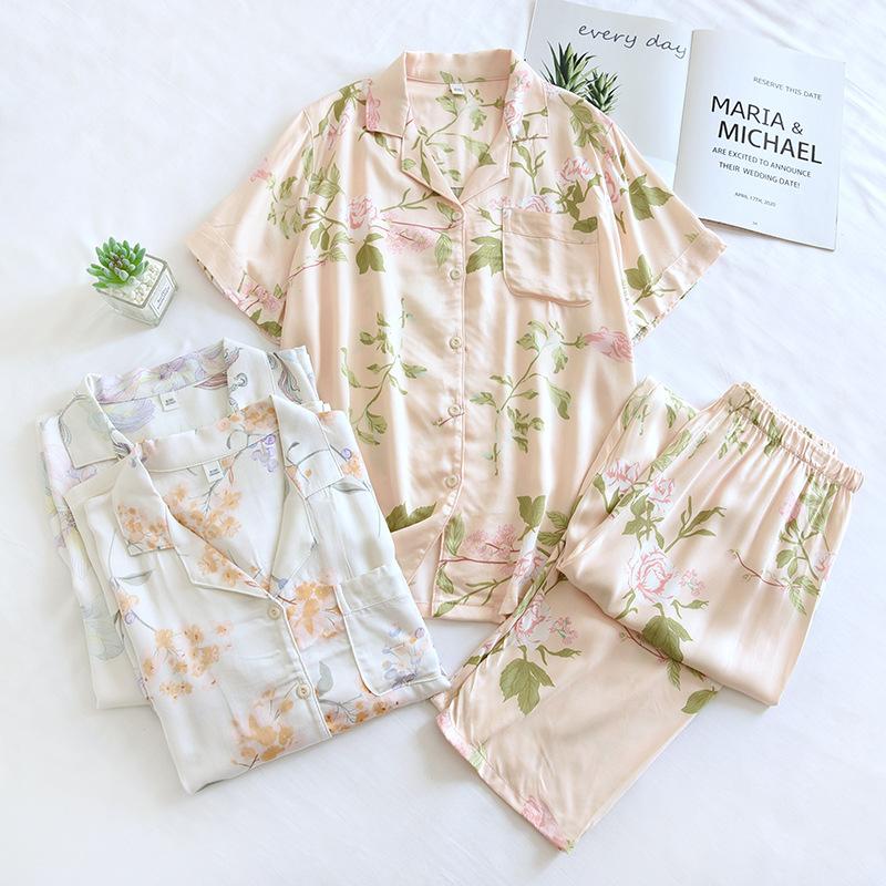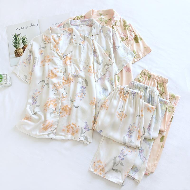 Pijama de Satén para Mujer Verano Delgado Manga Corta Pantalón Recién Llegado Conjunto Traje para Casa de Alta Gama