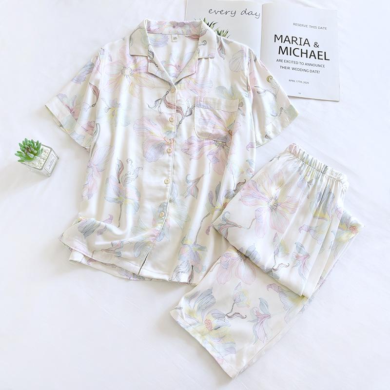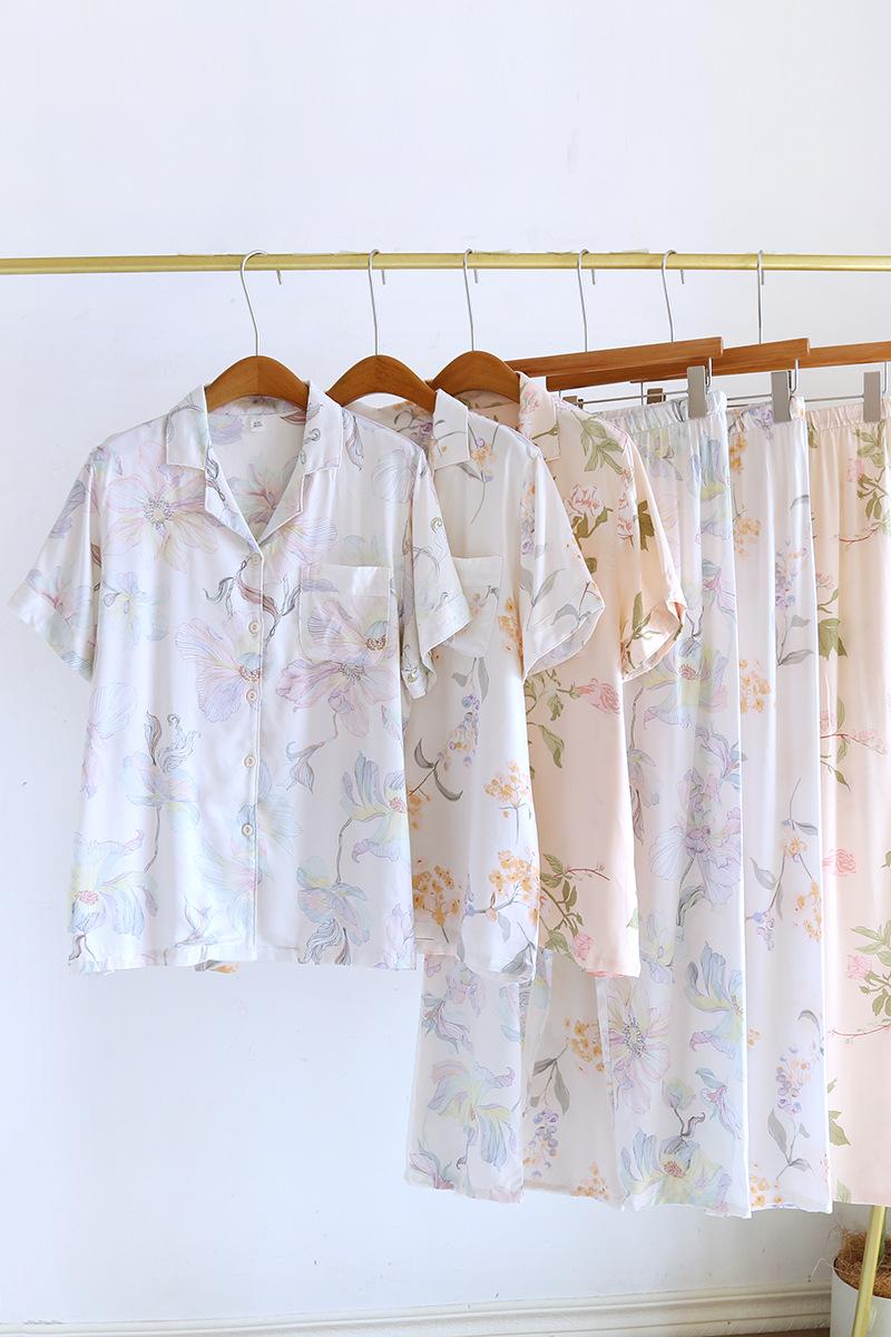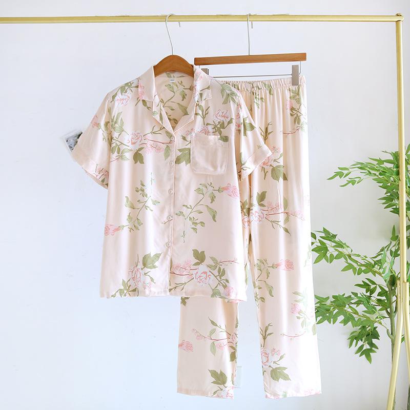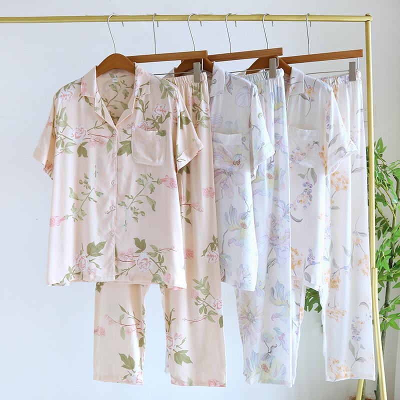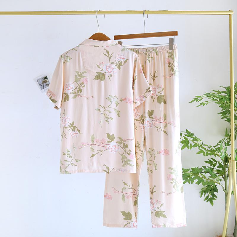 Pijama de Satén para Mujer Verano Delgado Manga Corta Pantalón Recién Llegado Conjunto Traje para Casa de Alta Gama