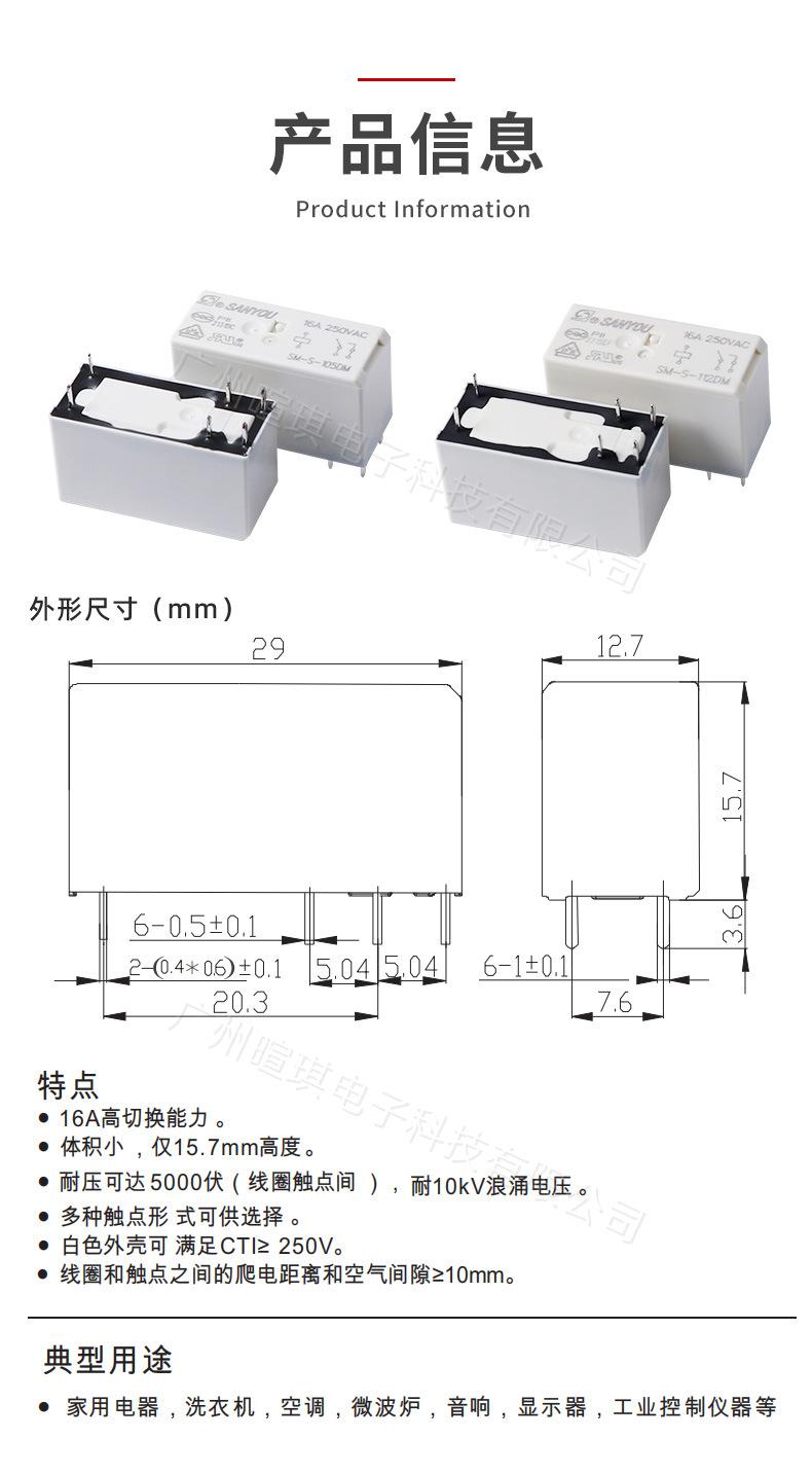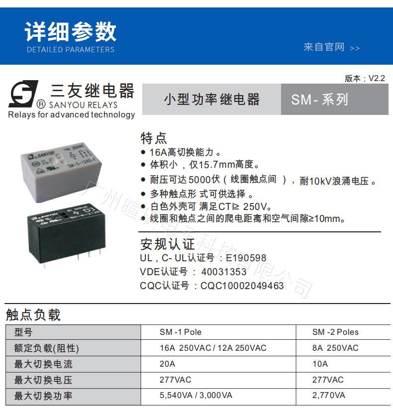 Relé Sanyou Sm-S-105Dm Relé de Aire Acondicionado 12V24V Universal 16A Relé de Pequeña Potencia 6 Pines