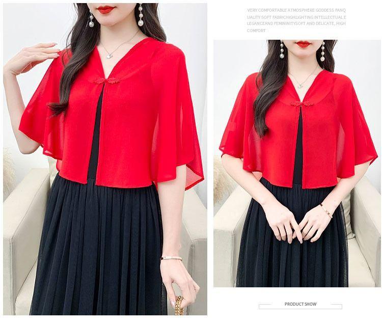 Chal para Mujer Verano Combinación Falda Cárdigan Exterior Poncho Ropa Protección Solar Combinable Fino Corto Abrigo Pequeño con Falda de Tirantes