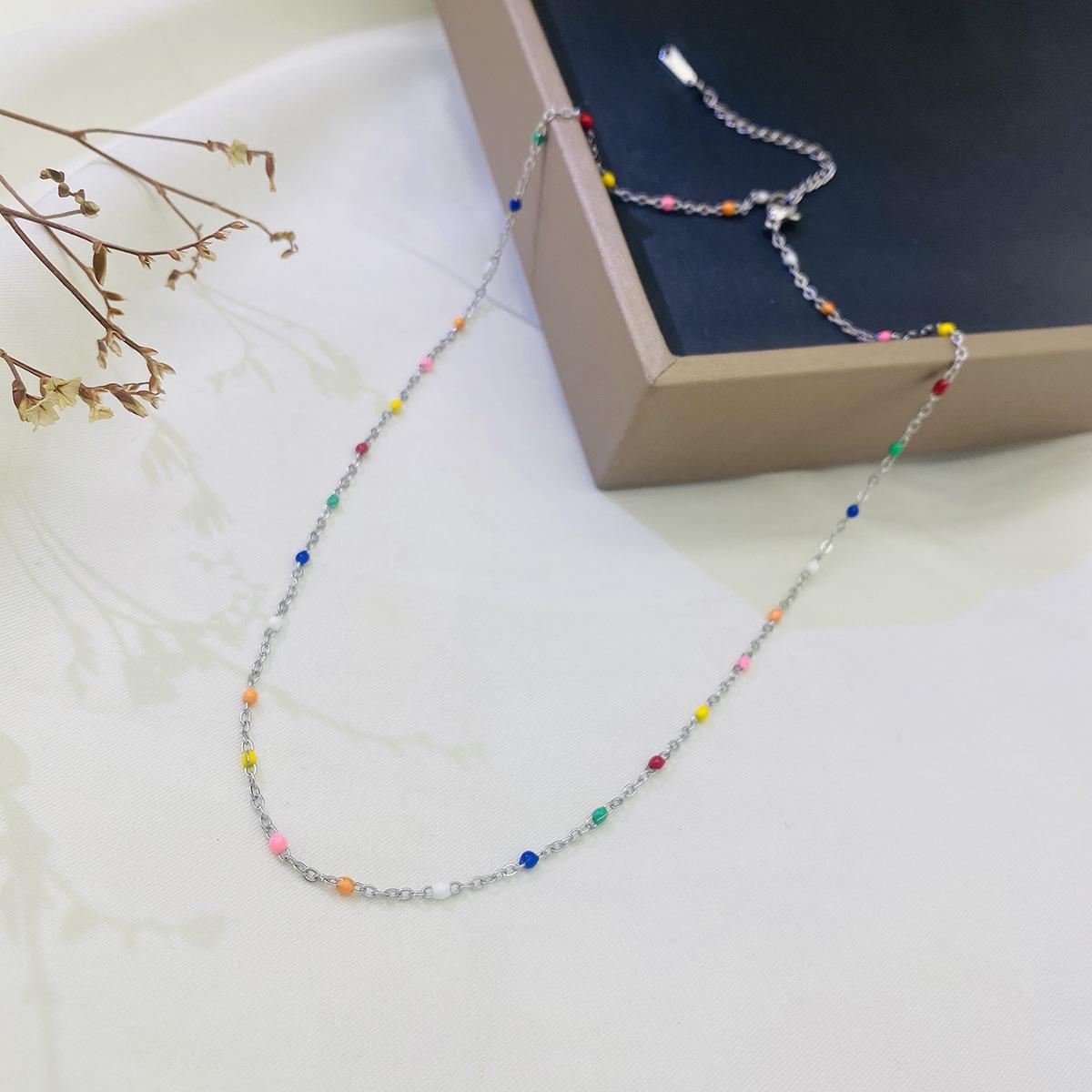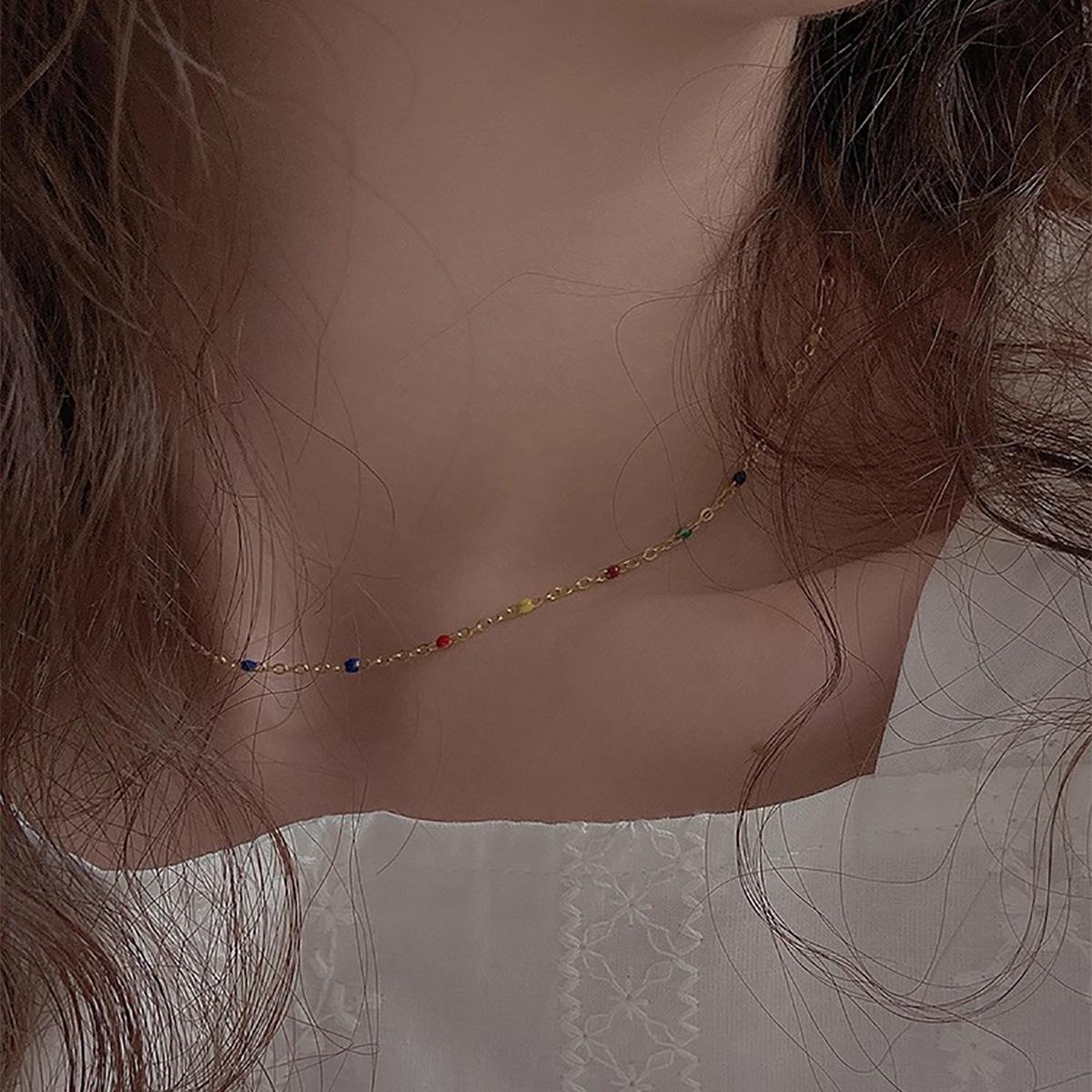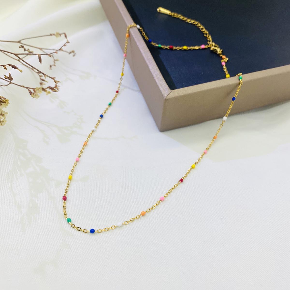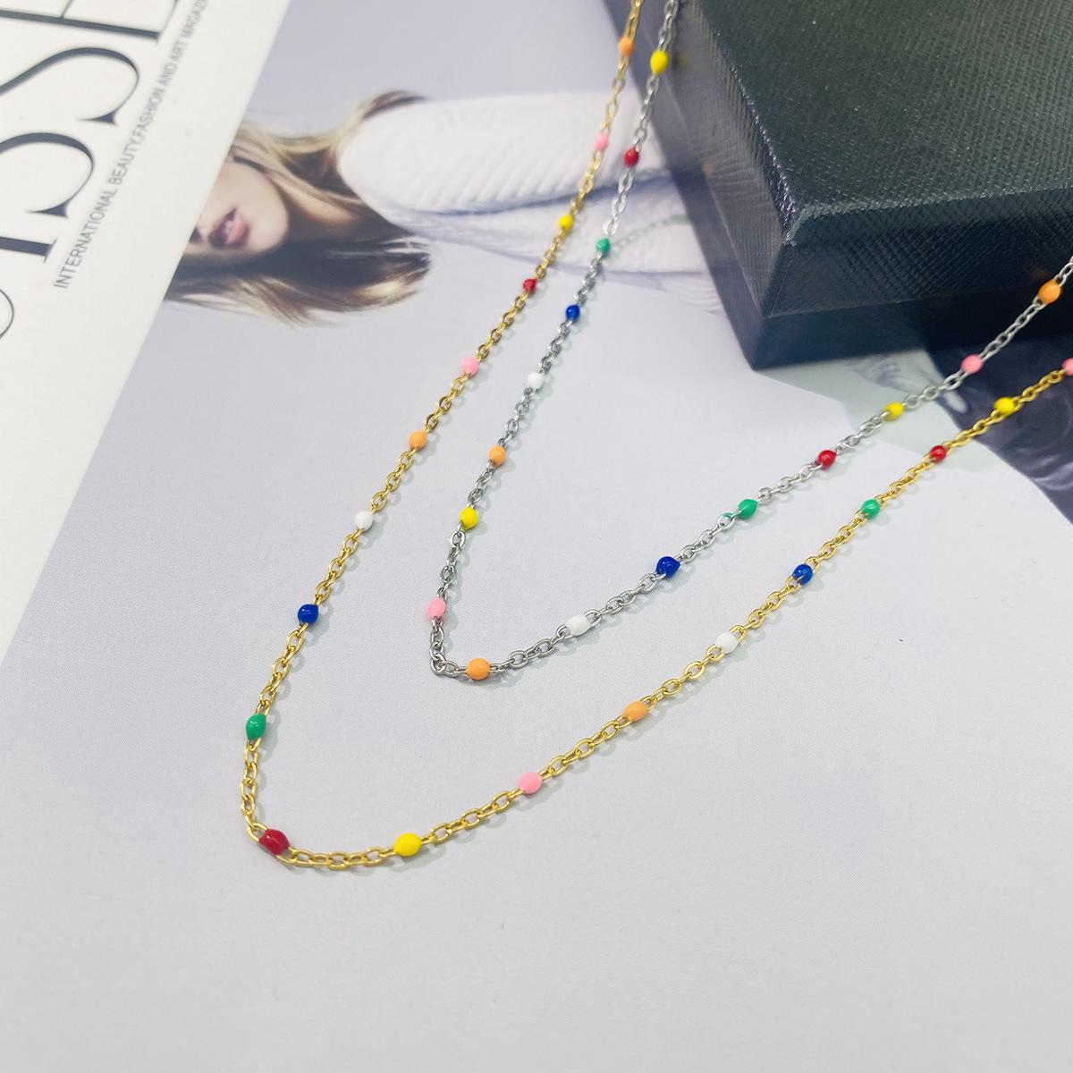 Collar de acero de titanio con colgante de gota de aceite de colores, regalo creativo simple para novias, cadena de clavícula clásica que combina con todo.