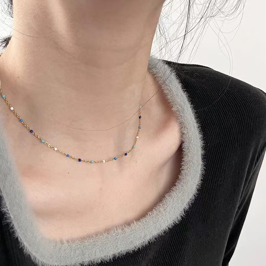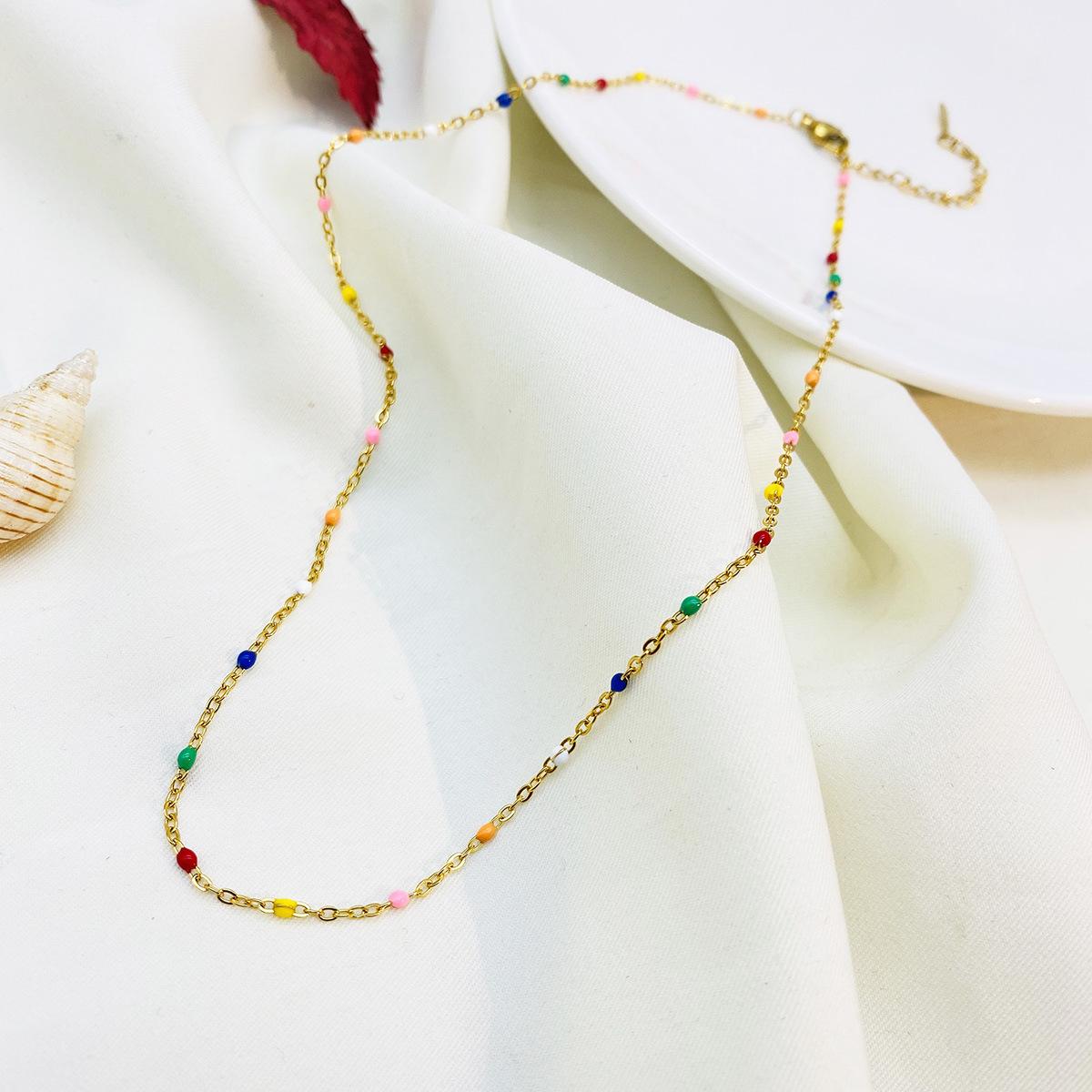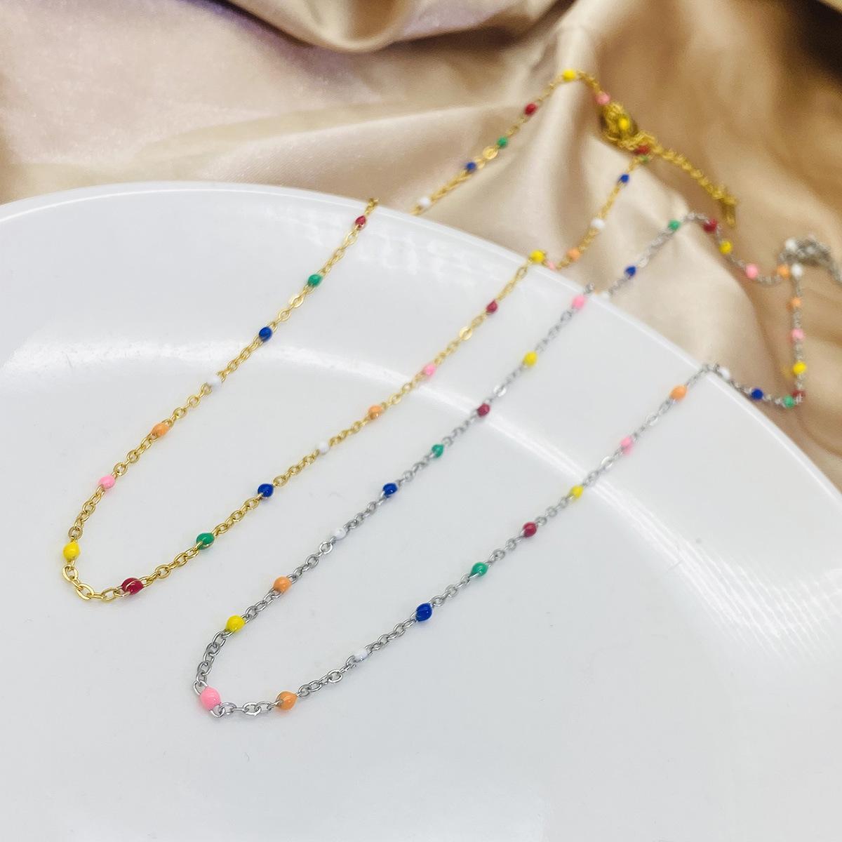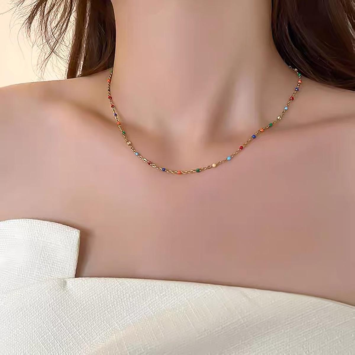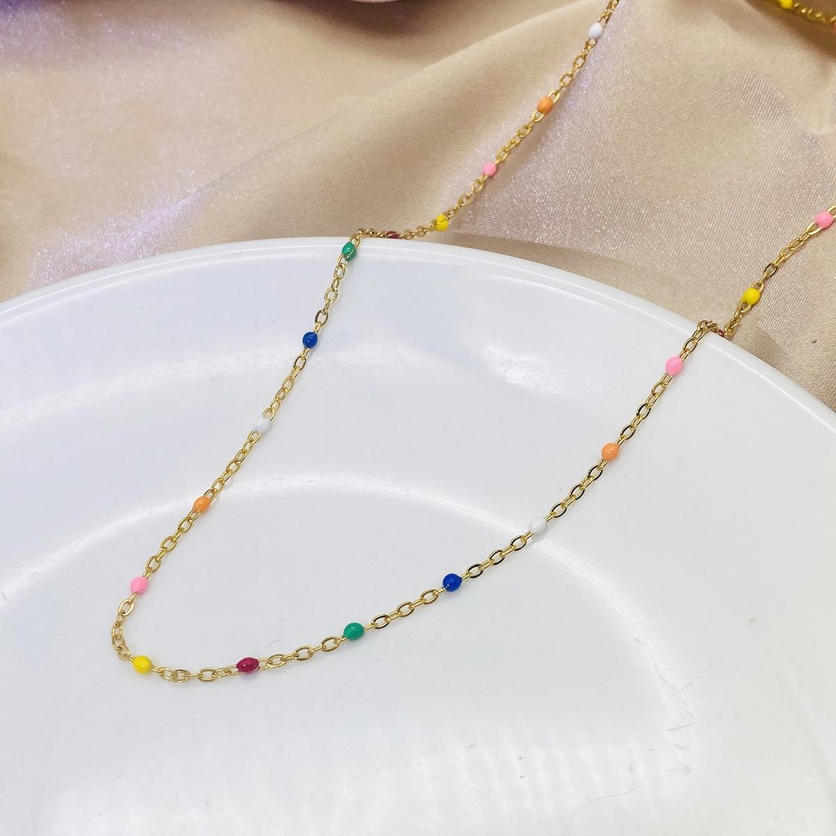 Collar de acero de titanio con colgante de gota de aceite de colores, regalo creativo simple para novias, cadena de clavícula clásica que combina con todo.