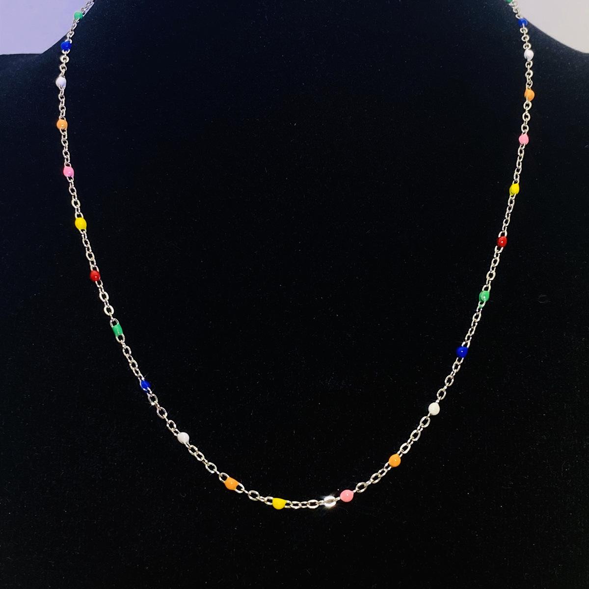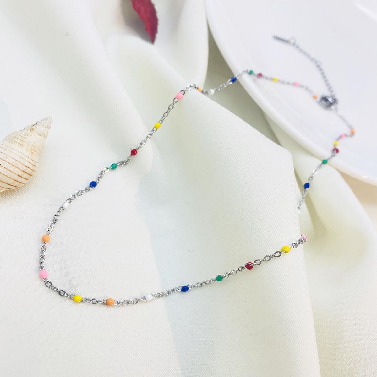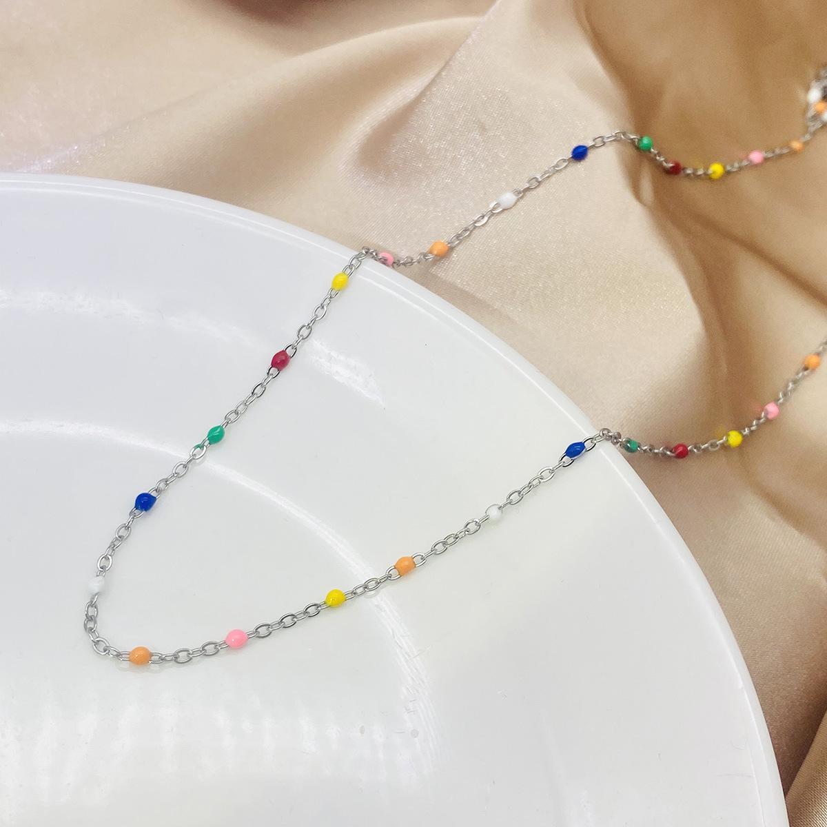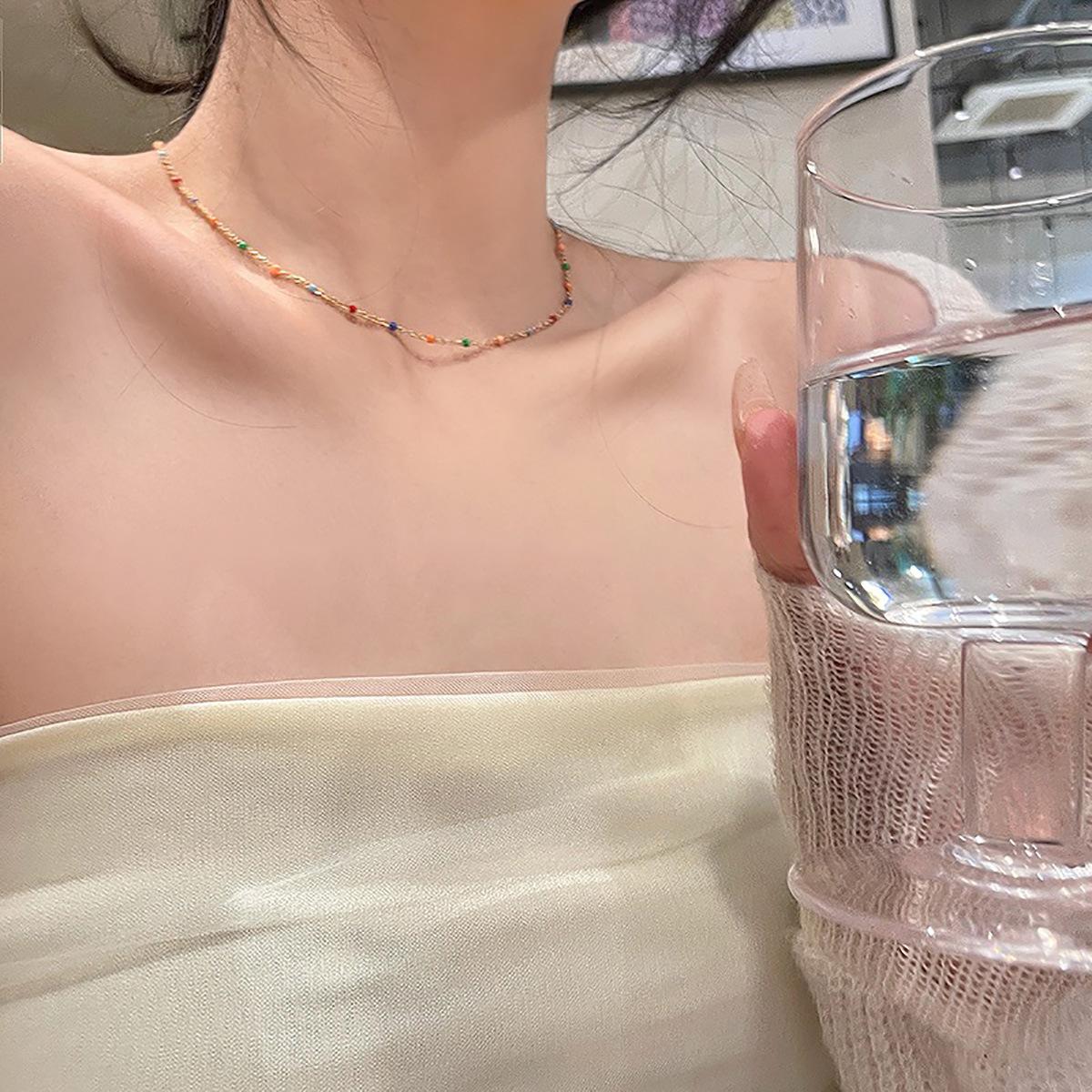 Collar de acero de titanio con colgante de gota de aceite de colores, regalo creativo simple para novias, cadena de clavícula clásica que combina con todo.