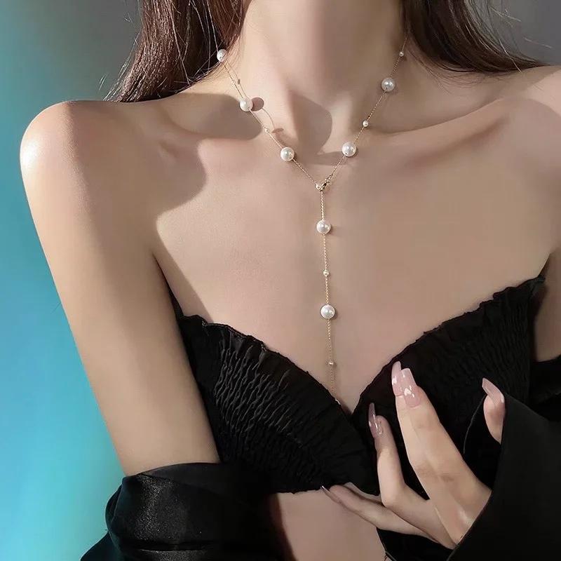 Collar sencillo de perlas, ligero, de lujo, con cadena de clavícula de nicho, estilo hip-hop, accesorios para mujer, joyería.