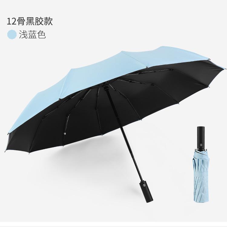 Paraguas Plegable Automático de 12 Varillas Grande al por Mayor Fuerte para Hombre y Mujer Goma Negra Protección Solar Sombrilla Publicitaria Personalizada