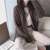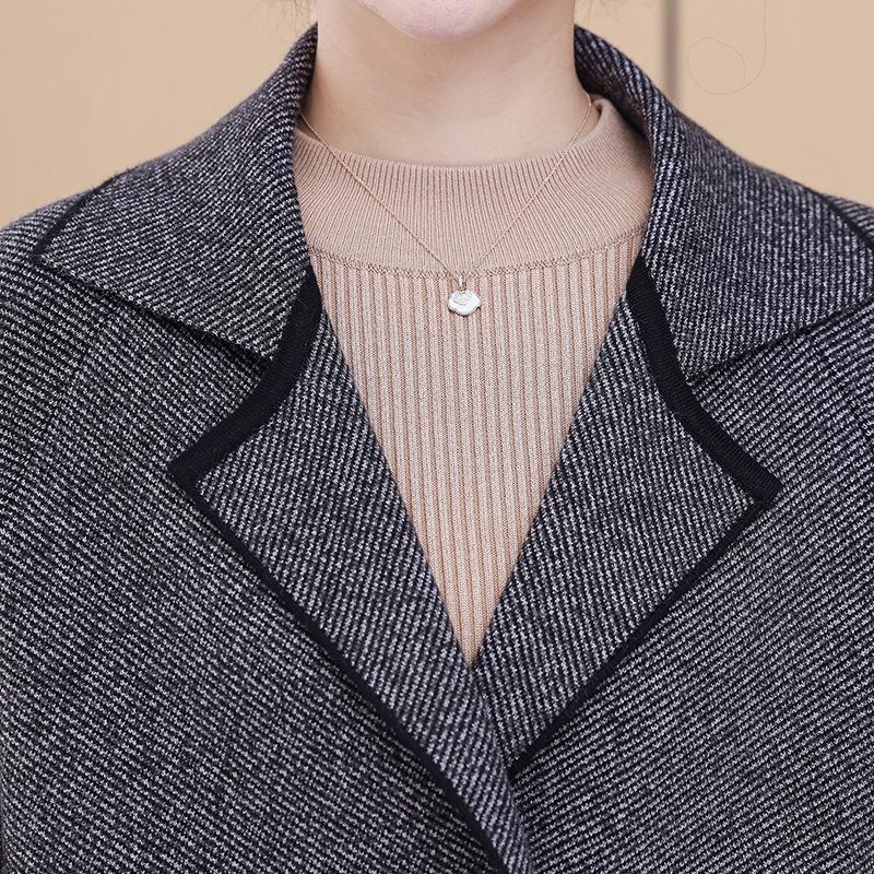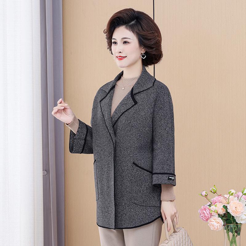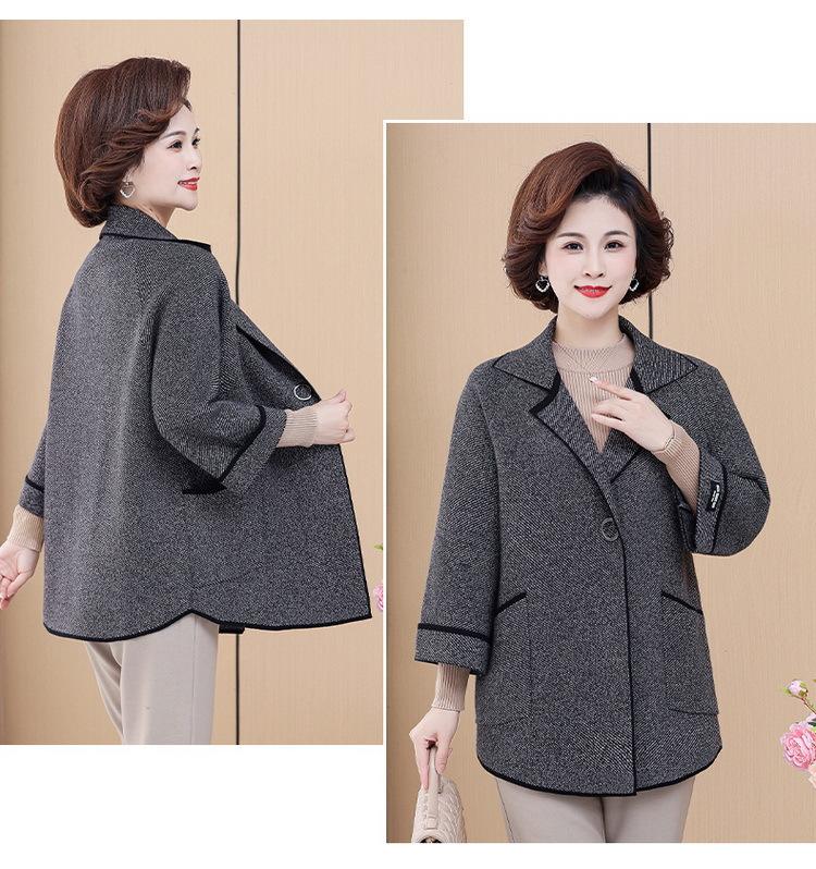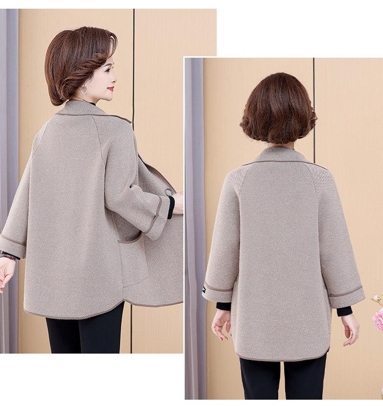 Cárdigan de punto suelto de longitud media para otoño e invierno, nuevo, para mujeres de mediana edad y mayores, abrigo de moda de color sólido de estilo coreano de talla grande 2023