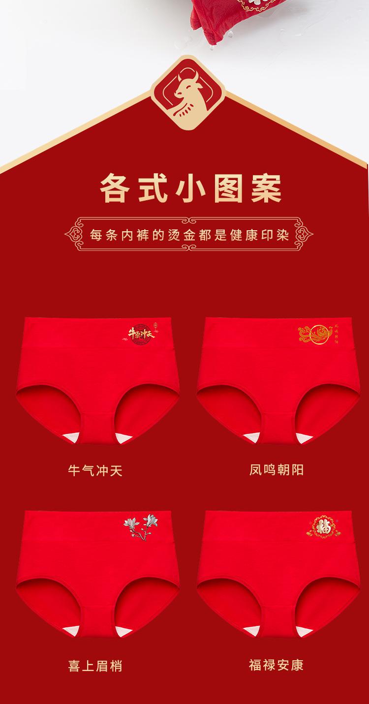 Ropa interior de algodón de la serie roja, pantalones de cintura alta para mujer, talla grande, transpirables, sexys, para la cadera, en stock
