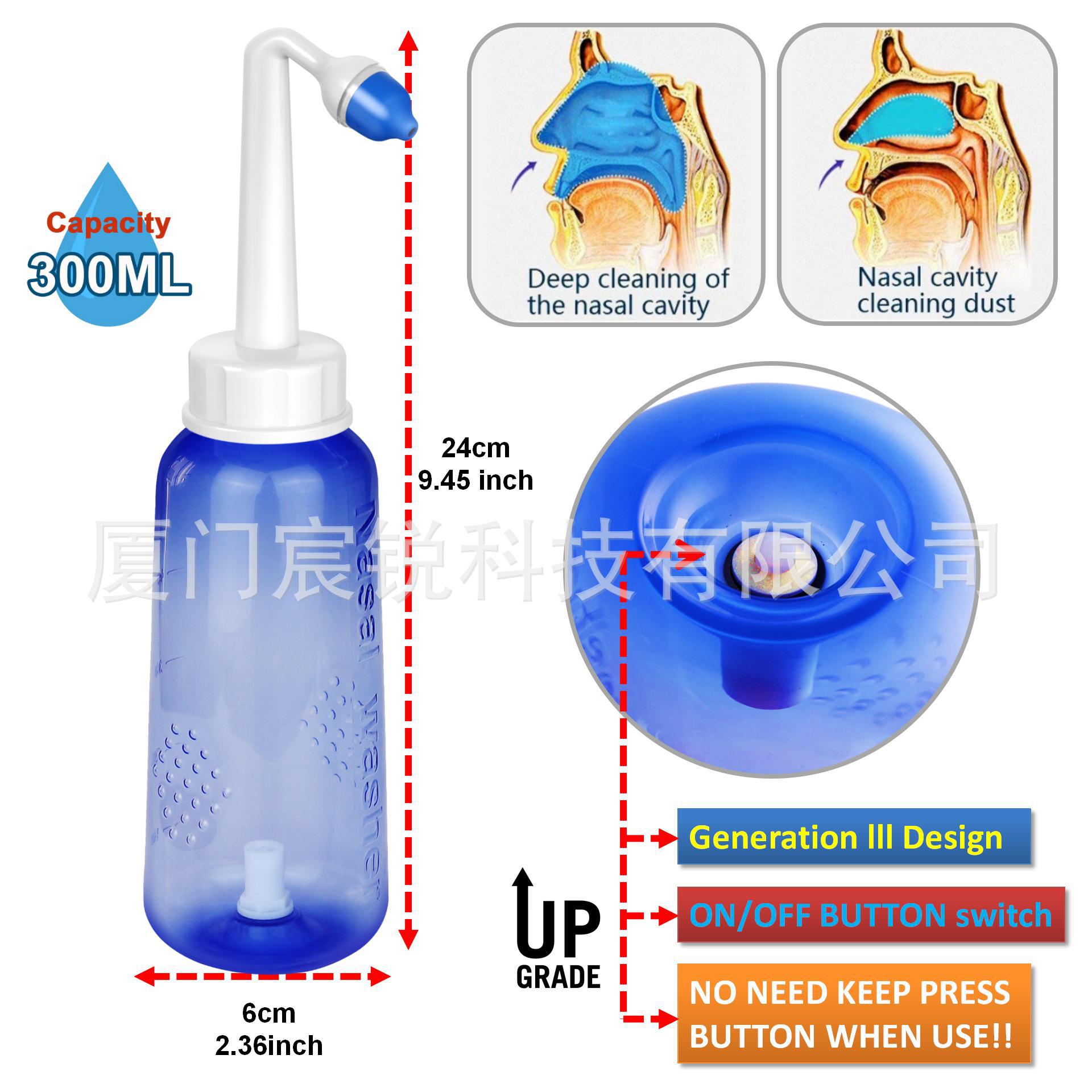 Olla para Lavado Nasal de 300 ml (LAVADO NASAL, NETI POT, ENJUAGUE SINUSAL), Comercio Exterior | Bienes Transfronterizos (AliExpress, EBAY, WISH, Amazon, etc.), con Caja de Color a Juego en Inglés + Instrucciones, Sin Logotipo de Marca.