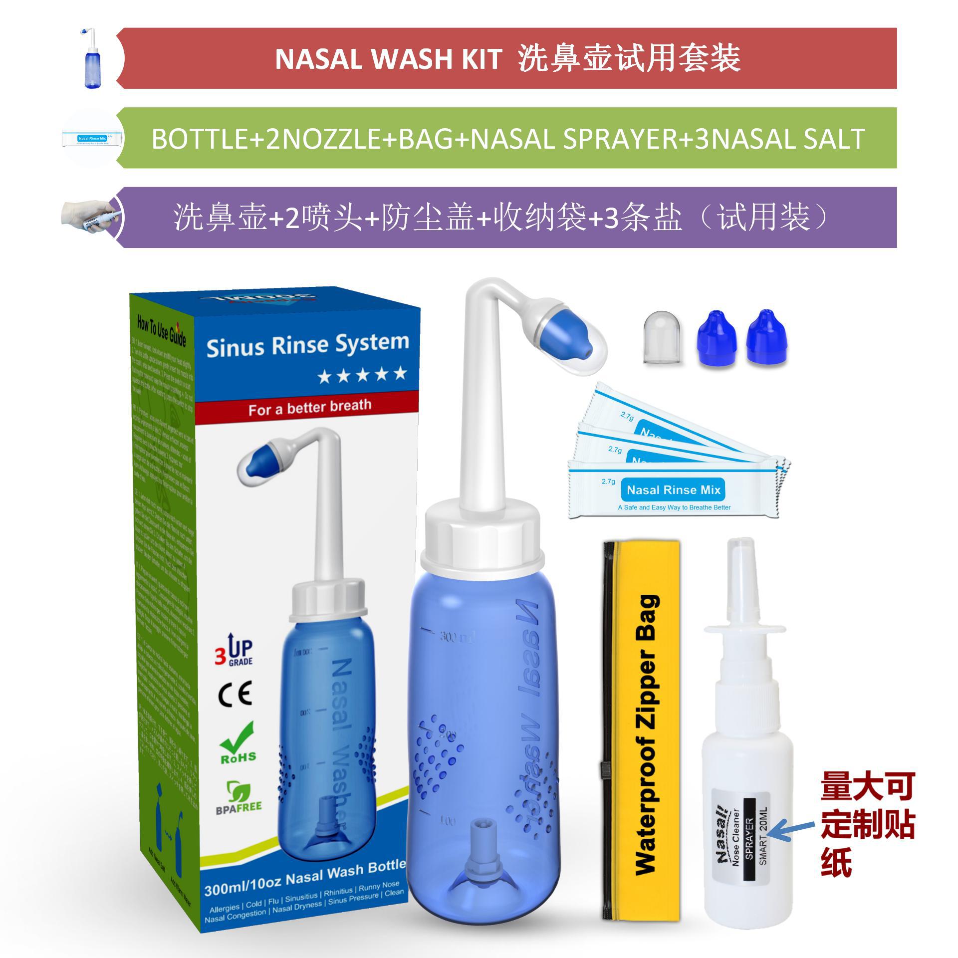 1 JUEGO:BOTELLA NASAL+3 SAL+ASPERSOR NASAL+BOLSA DE ALMACENAMIENTO+CAJA DE REGALO