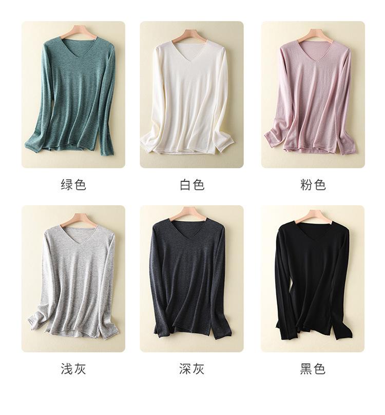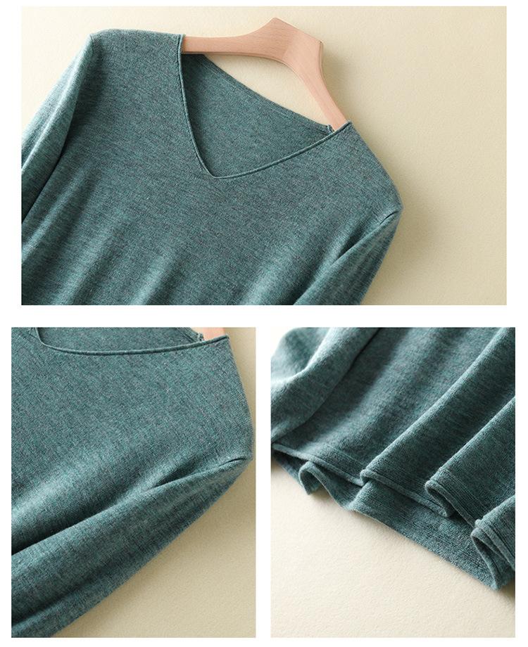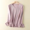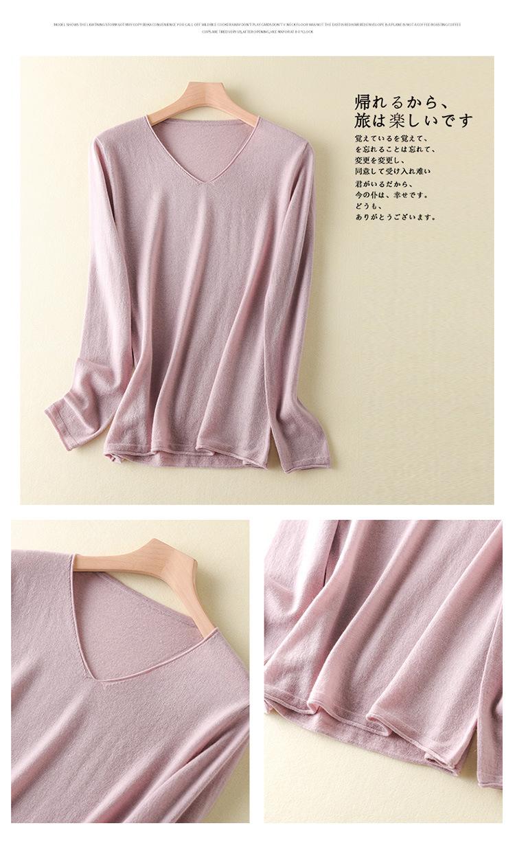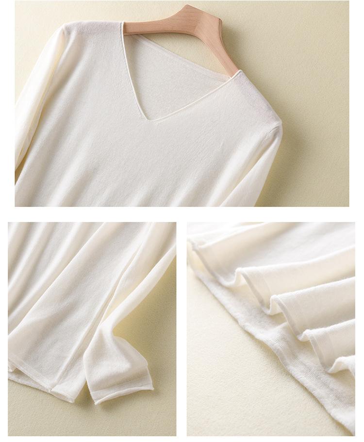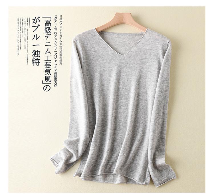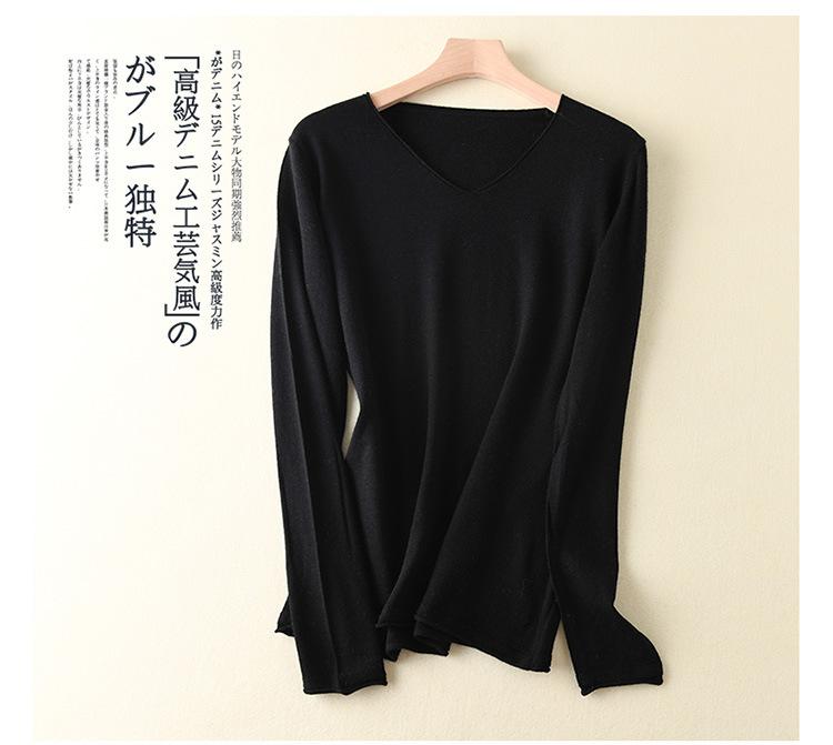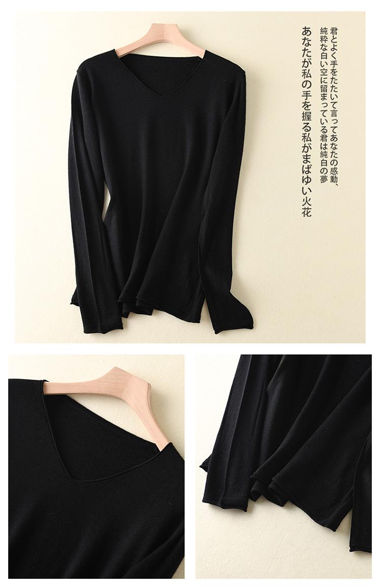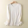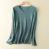 Suéter de cachemira con cuello en V para mujer, jersey de lana pura con base de imitación fina, jersey de punto de manga larga ajustado y corto.