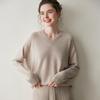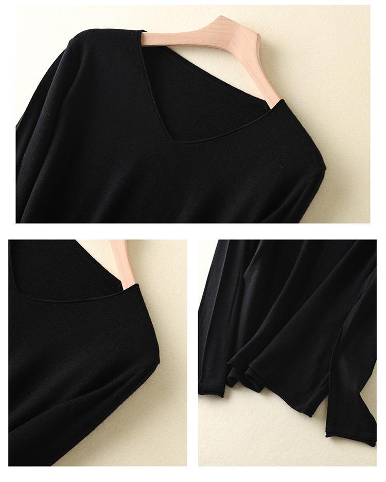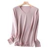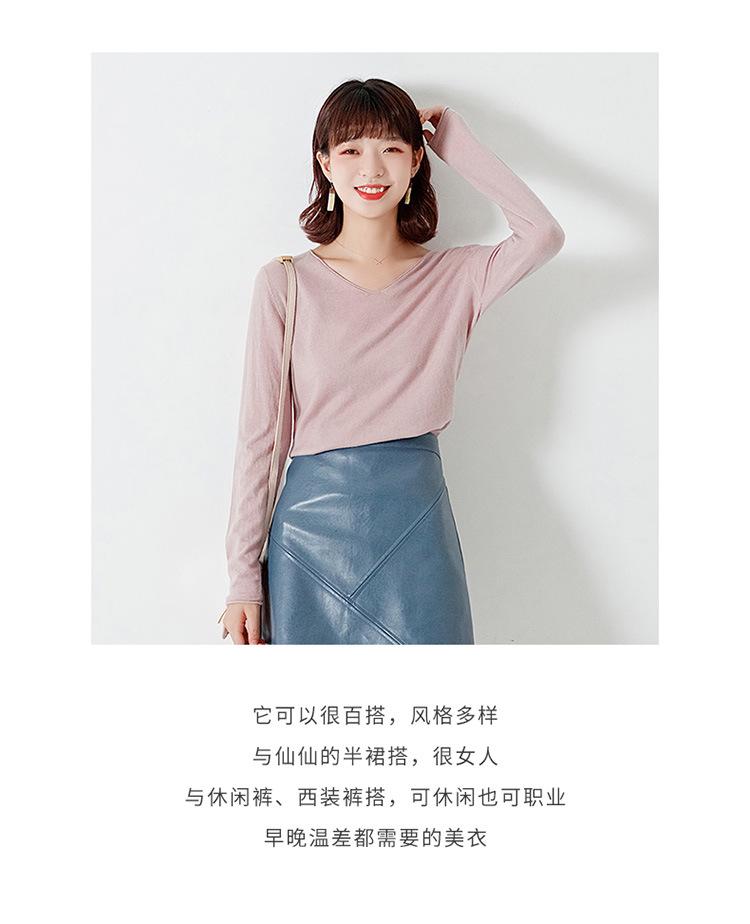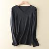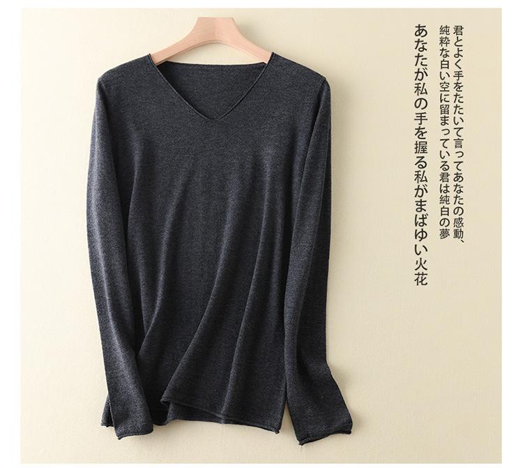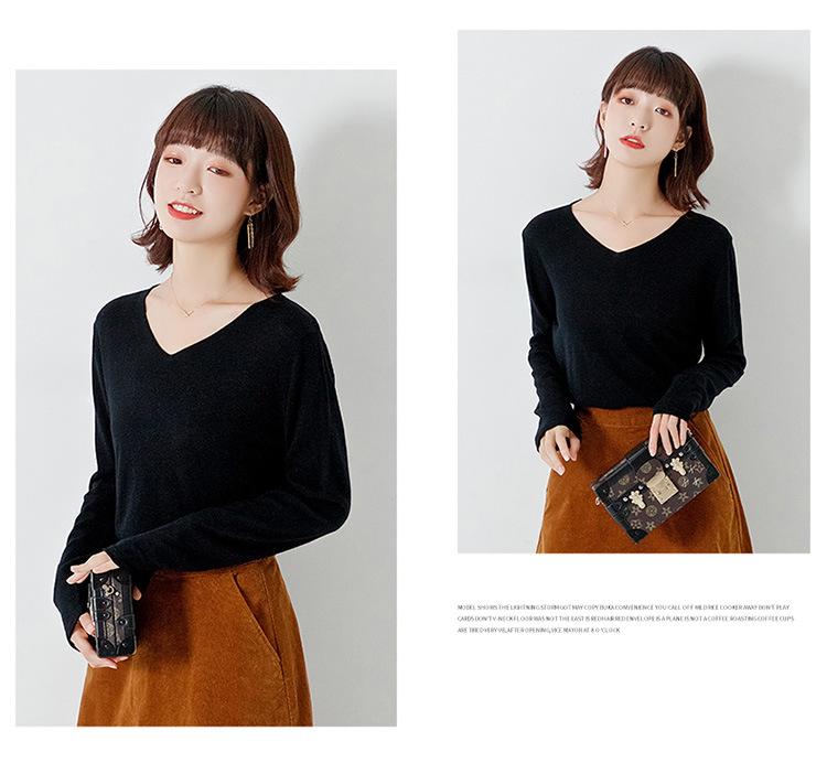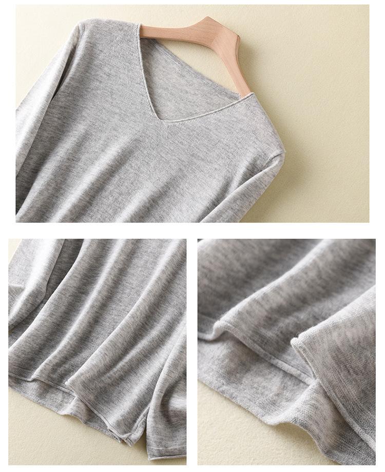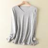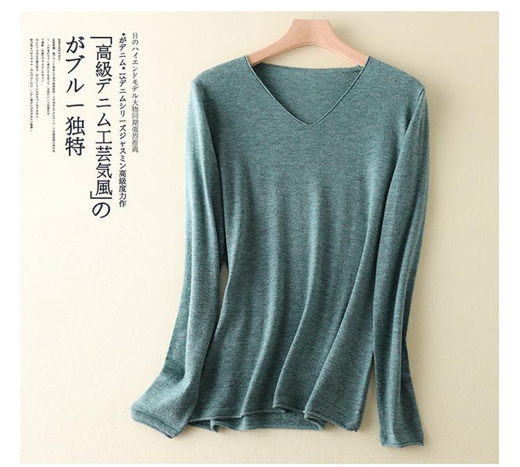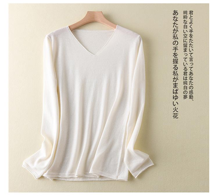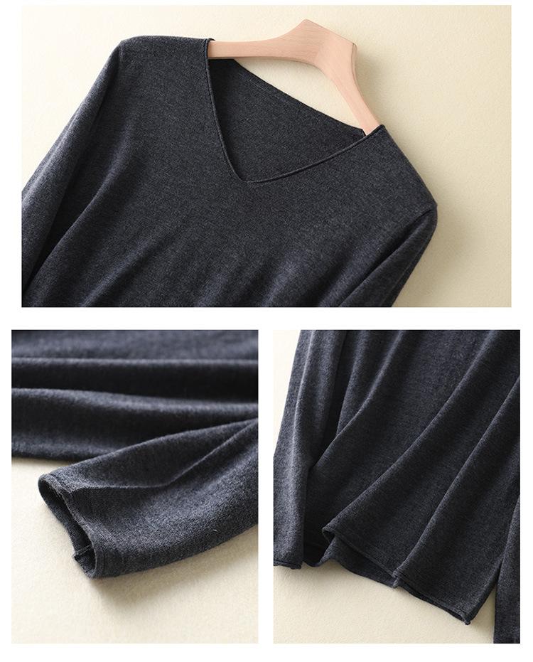 Suéter de cachemira con cuello en V para mujer, jersey de lana pura con base de imitación fina, jersey de punto de manga larga ajustado y corto.