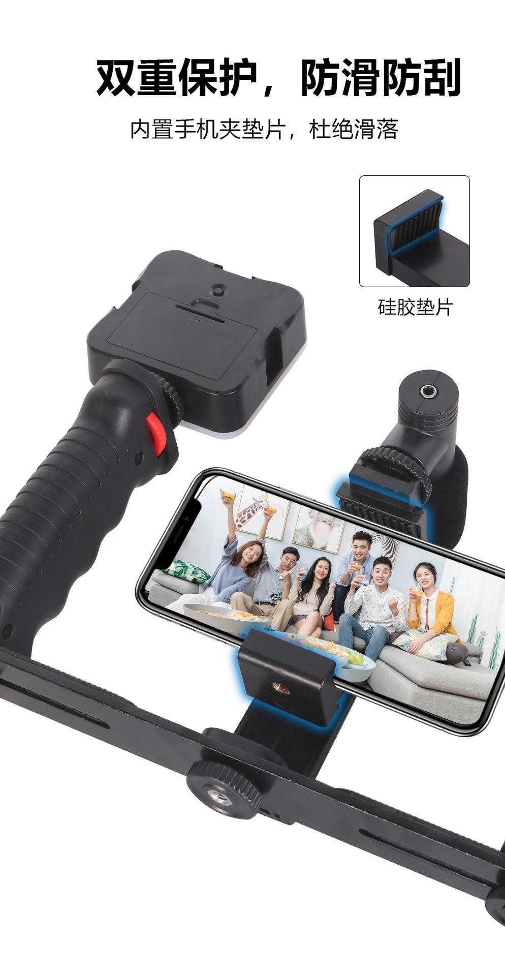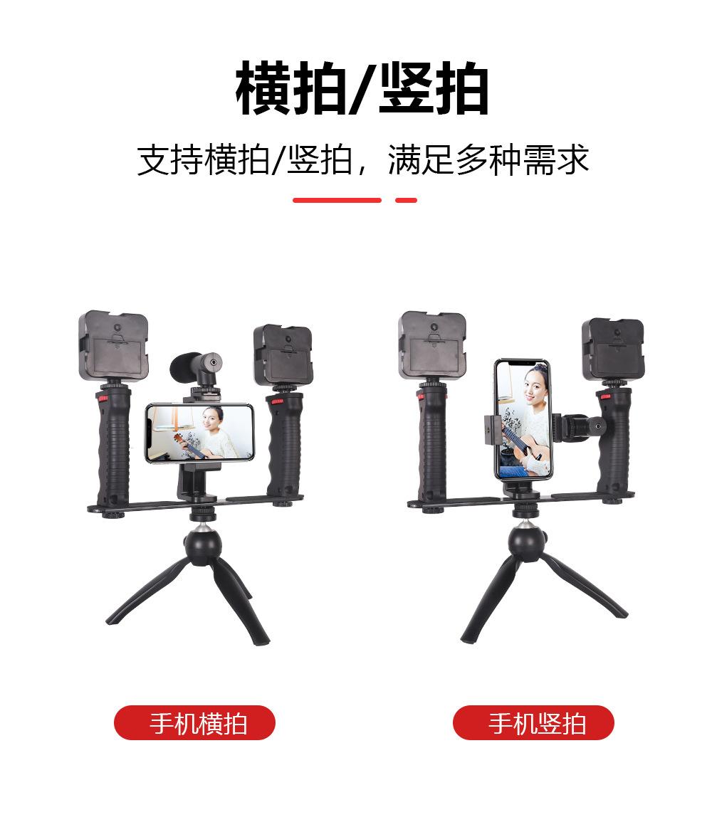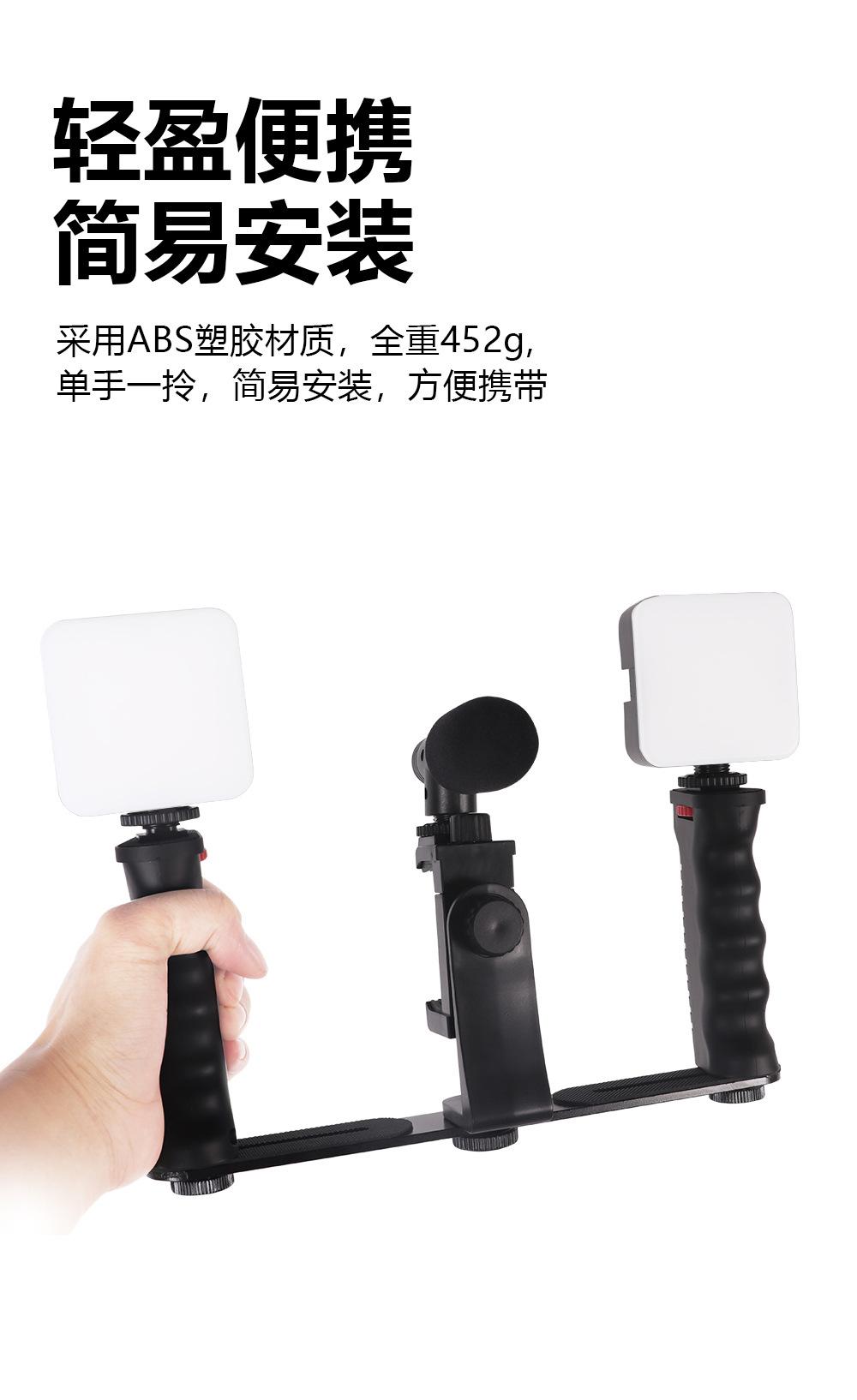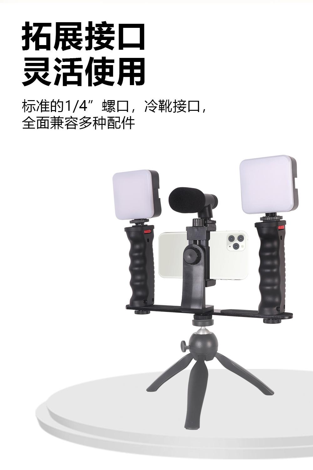 Estabilizador de mano, soporte giratorio de giro e inclinación, soporte para micrófono de jaula de conejo para teléfono móvil, luz de relleno, marco para teléfono móvil en vivo