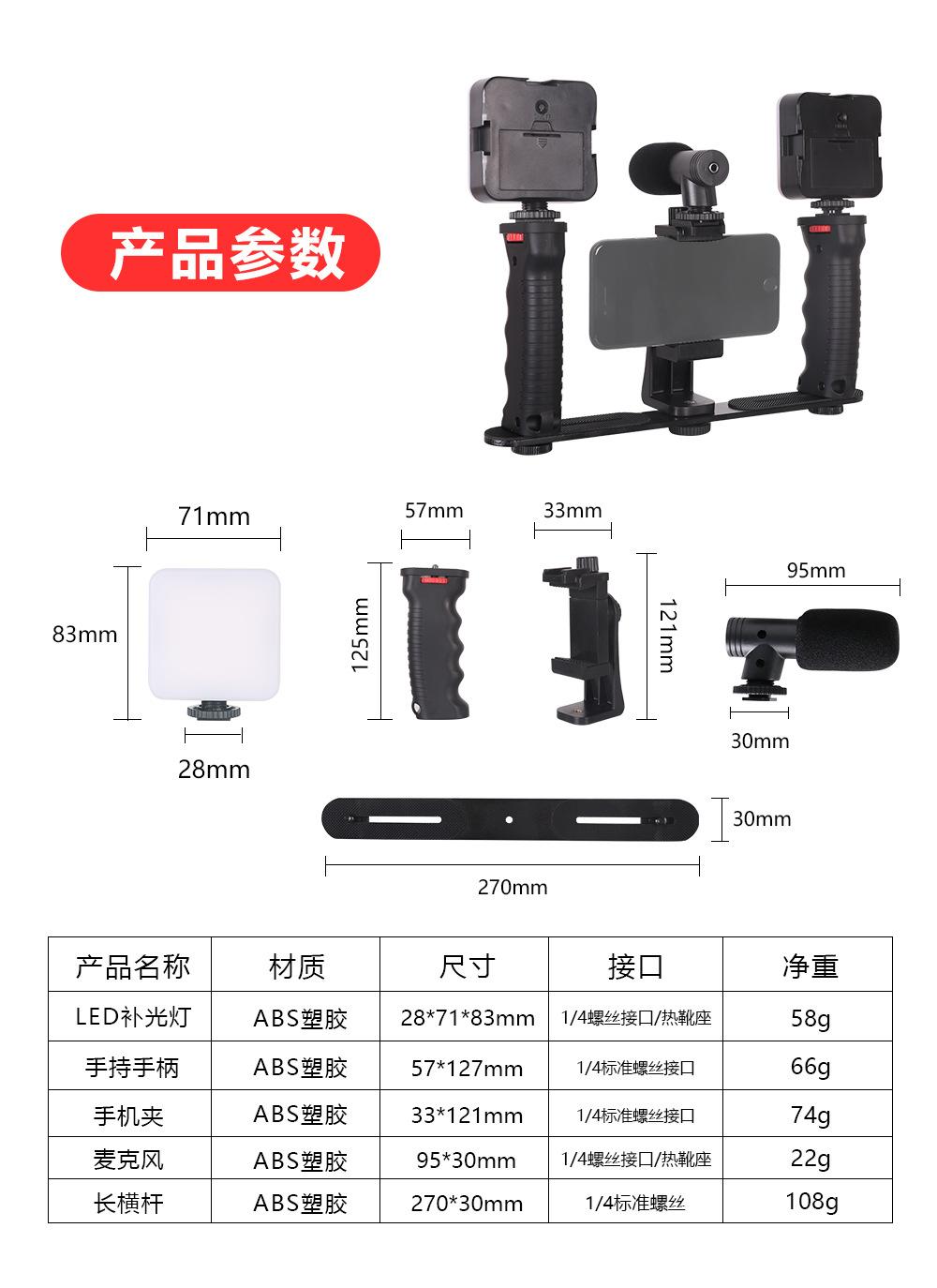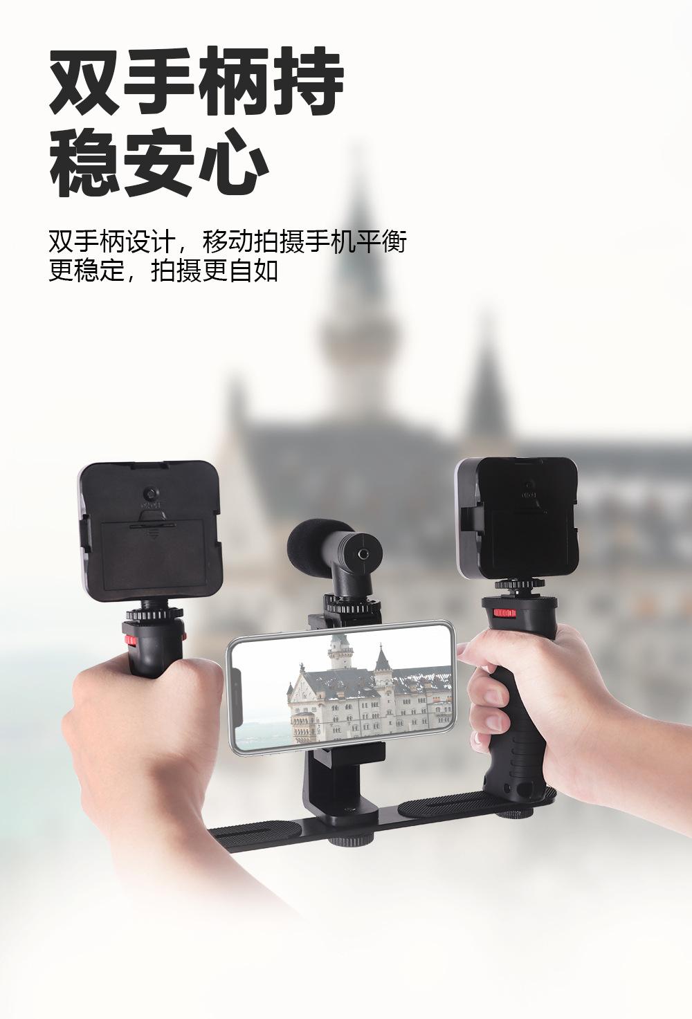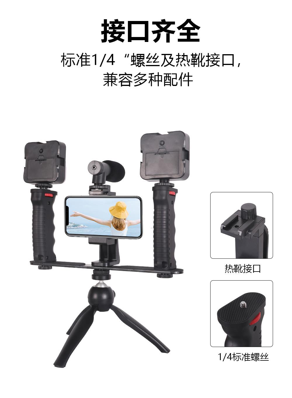Estabilizador de mano, soporte giratorio de giro e inclinación, soporte para micrófono de jaula de conejo para teléfono móvil, luz de relleno, marco para teléfono móvil en vivo