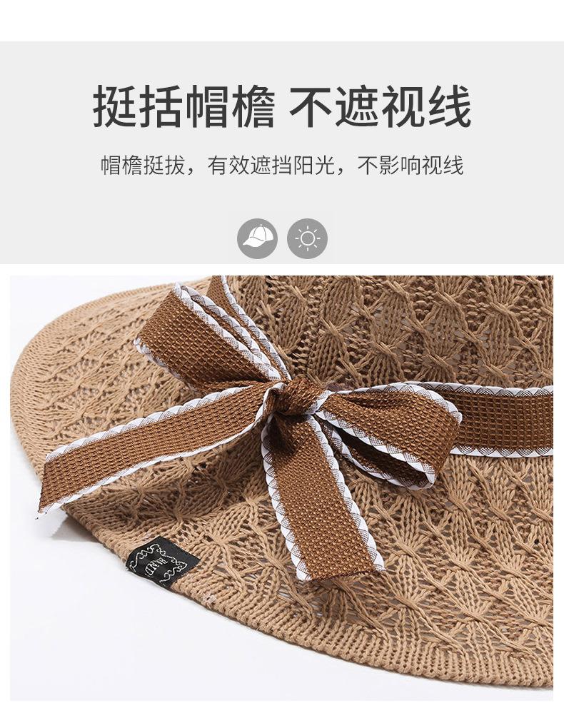 Sombrero de Paja de Estilo Coreano para Primavera y Verano, Combinable con Todo, para Mujer, con Lazo, Parasol, Protección Solar, Sombrero de Playa para Vacaciones en la Costa, Sombrero para el Sol, Sombrero Fresco