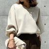 2021 Otoño e Invierno Estilo Japonés Casual Sencillo Color Sólido Algodón Sudadera Top, Versátil Ajuste Holgado, Manga Larga Adelgazante