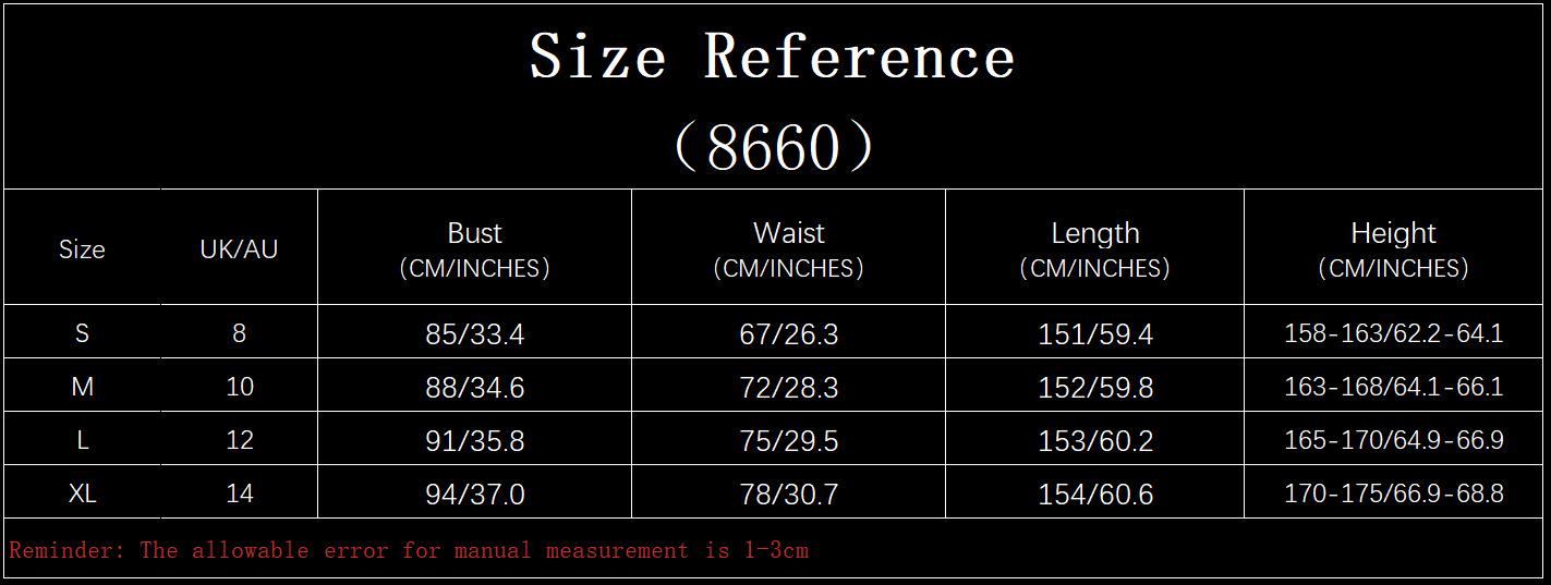 Talla XXL: Busto 97 Cintura 81 Largo 155 Adecuado para altura 173-180