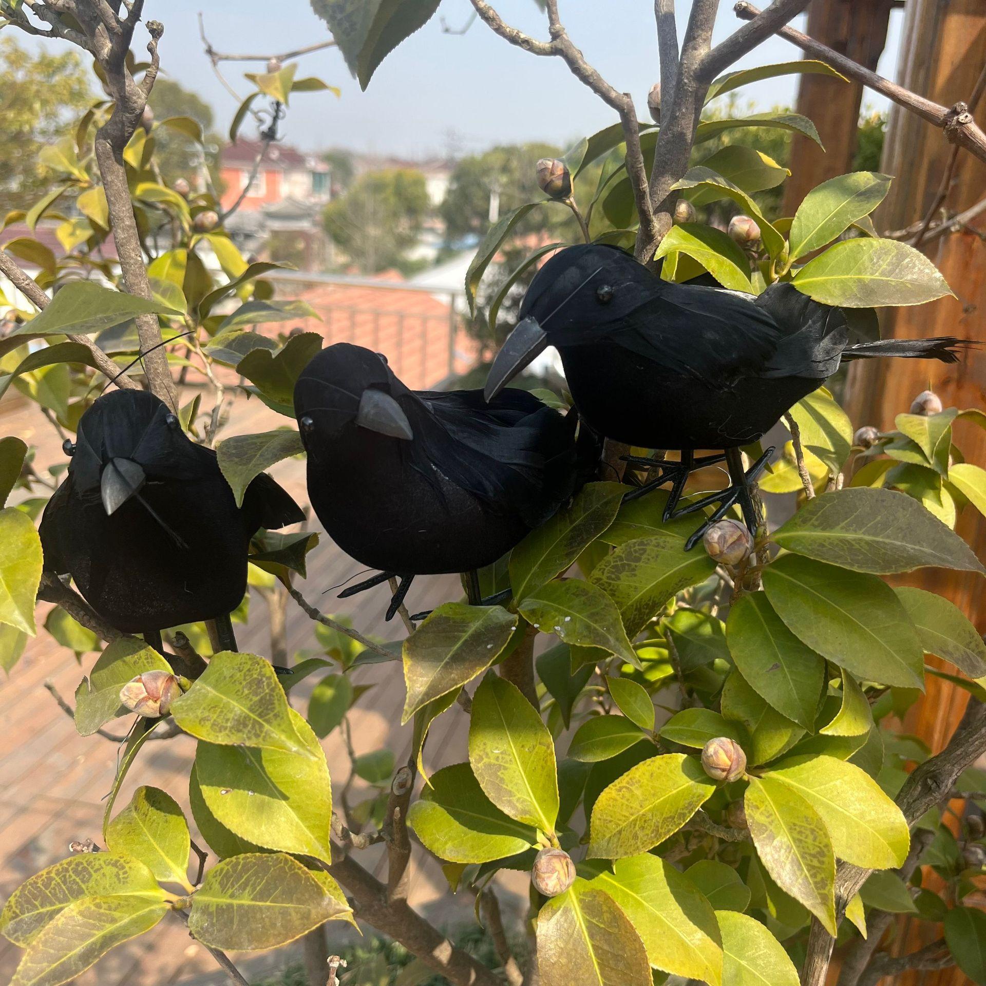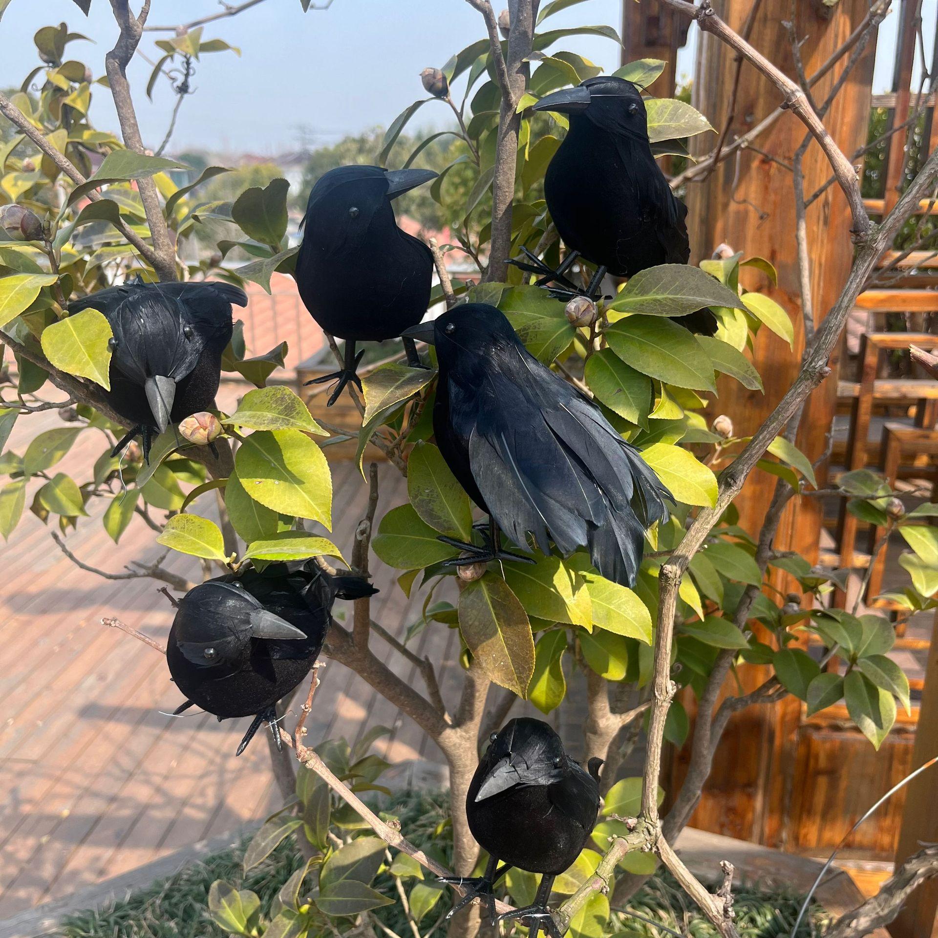 Decoración de cuervo con plumas artificiales negras para fiesta de Halloween, hecha a mano, suministros festivos para interiores y exteriores.