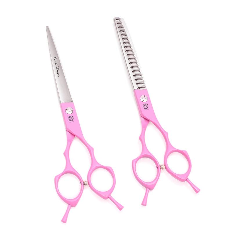 Juego de belleza para mascotas Zilong Pink, tijeras rectas, tijeras planas, tijeras de doble cola, tijeras de espina de pescado curvas, herramienta de adelgazamiento
