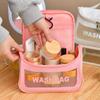 Bolsa de cosméticos de PU esmerilada, gran capacidad, impermeable, portátil, para viajes, bolsa de lavado con gancho multifuncional, bolsa de almacenamiento para lavado