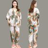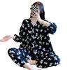 Pijamas de Algodón Seda para Mujer Primavera y Otoño Manga Siete Puntos Talla Grande Ropa para Aire Acondicionado Ropa para Casa Verano Delgada Estilo Japonés Traje de Algodón Seda para Estudiante