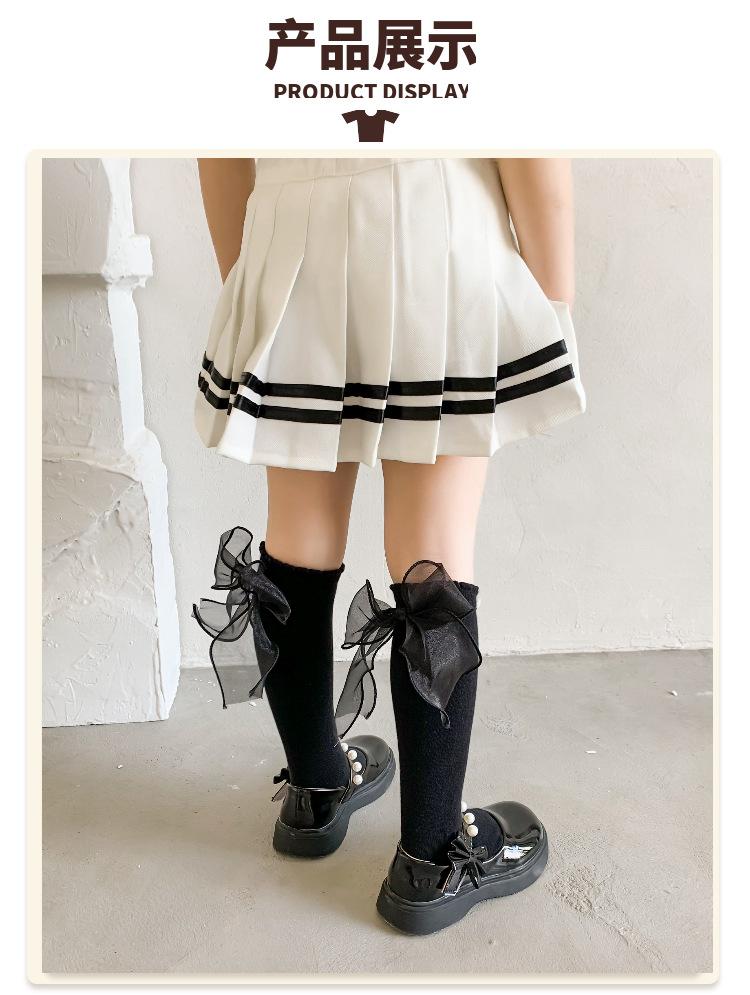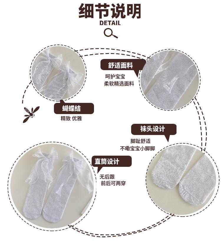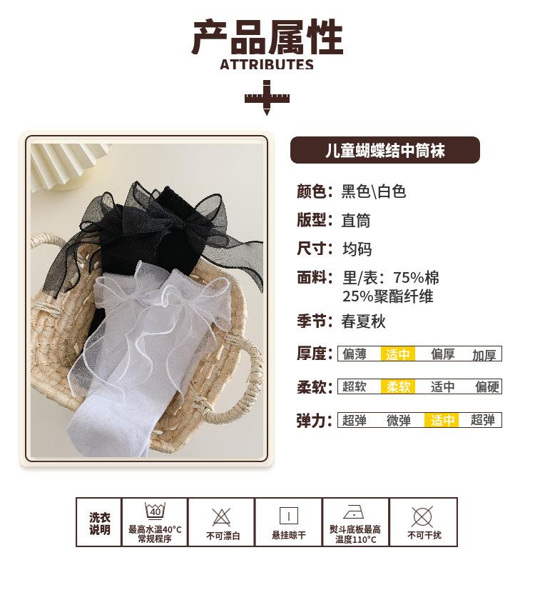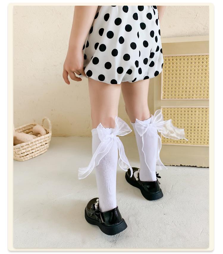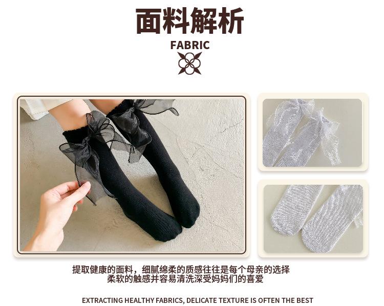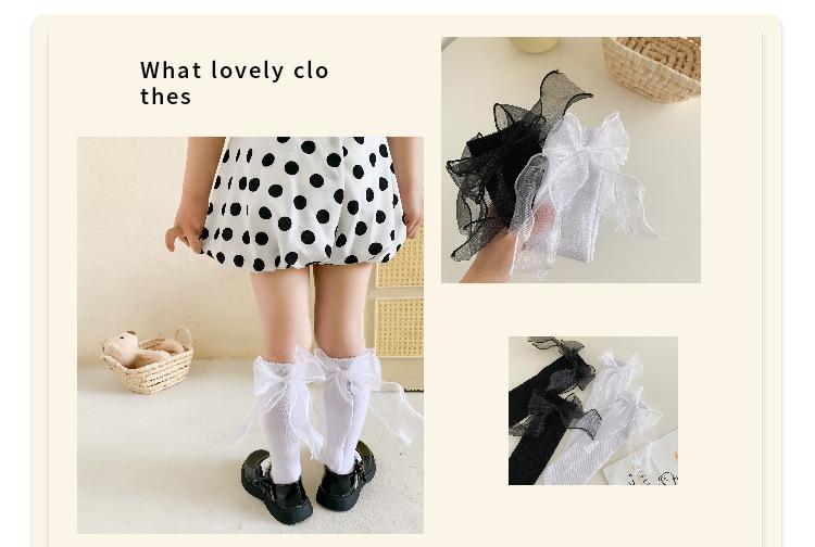 Calcetines de niña, calcetines de tubo medio, calcetines de bebé, primavera y verano, nuevos calcetines finos de moda para niños, calcetines de tubo medio vintage con lazo.