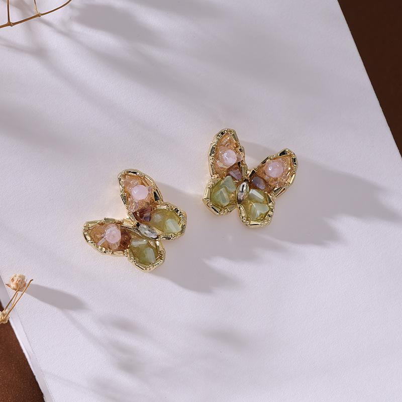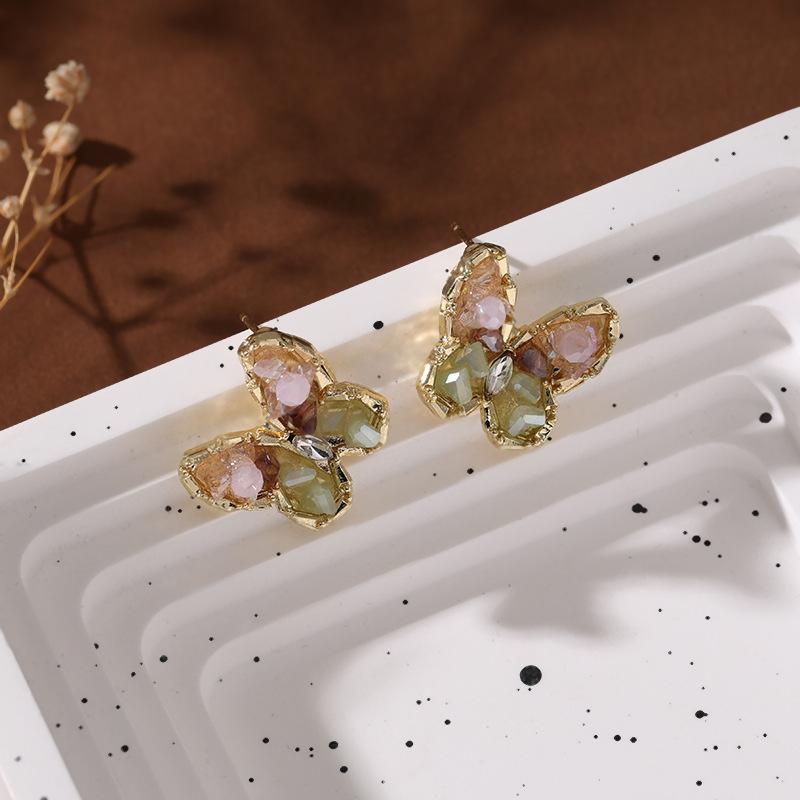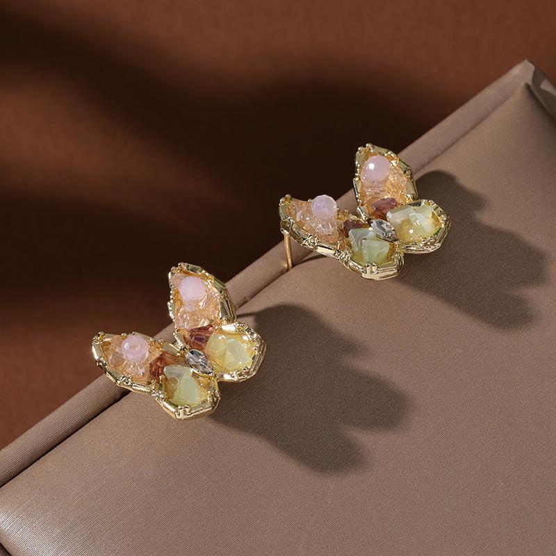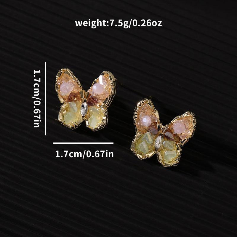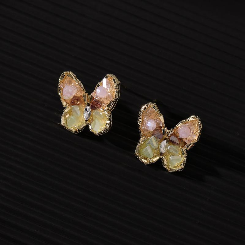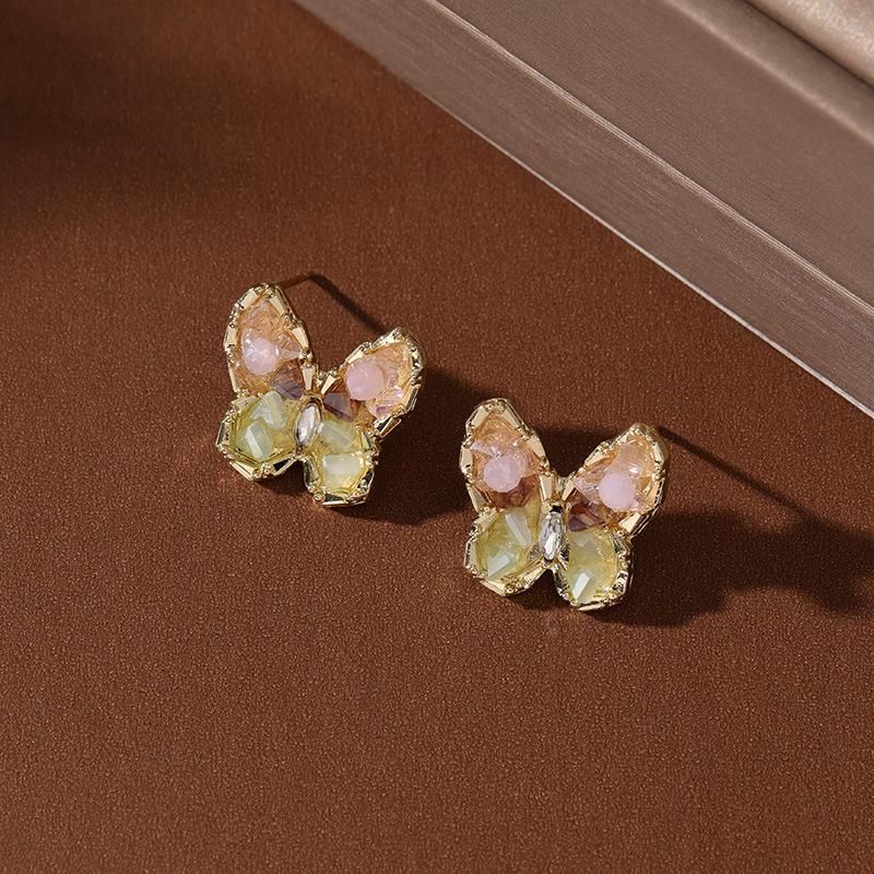Pendientes de mariposa de cristal con aguja de plata S925, coloridos y brillantes, con diseño de nicho, de alta calidad y frescos para mujer.