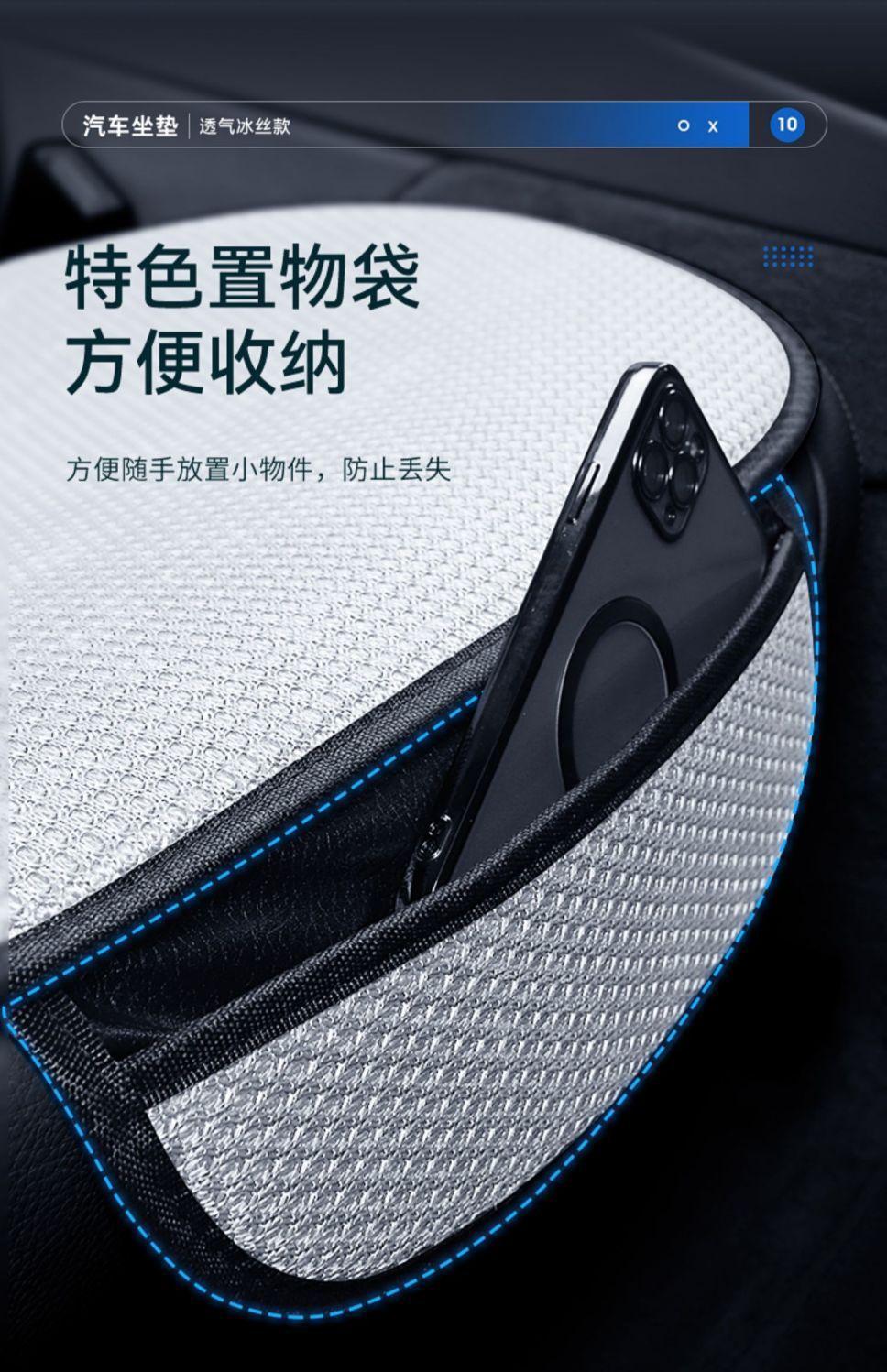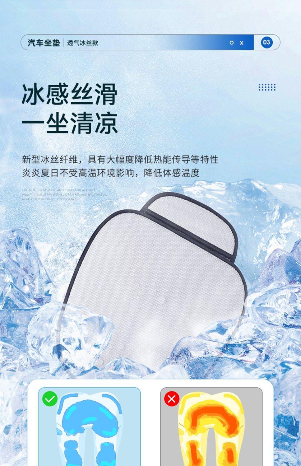 Cojín para Asiento de Coche de Seda de Hielo No Caliente Resistente al Sol, Almohadilla Refrescante de Verano, Adecuado para Todas las Estaciones, Ventilado, un Juego de Asientos con Sensación de Frescura