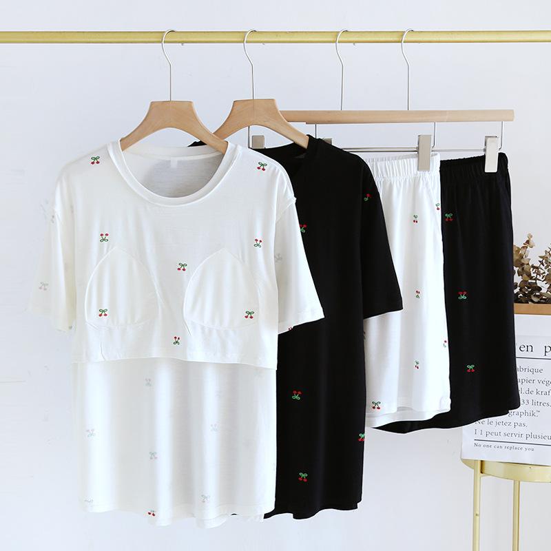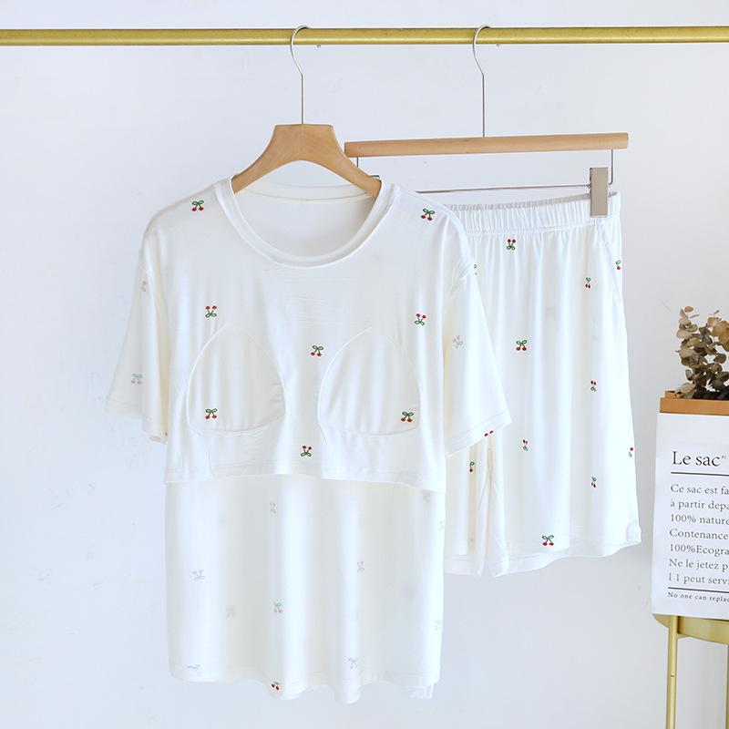 Conjunto de pijama modal para mujer con almohadilla para el pecho, manga corta y pantalones cortos, ropa informal de verano para el hogar