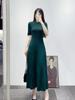 Ropa de Mujer Estilo Francés, Nuevo Estilo Elegante y Maduro Otoño e Invierno, Vestido Largo de Punto Elegante Ajustado Verde sin Espalda