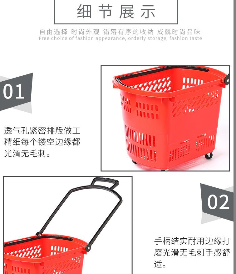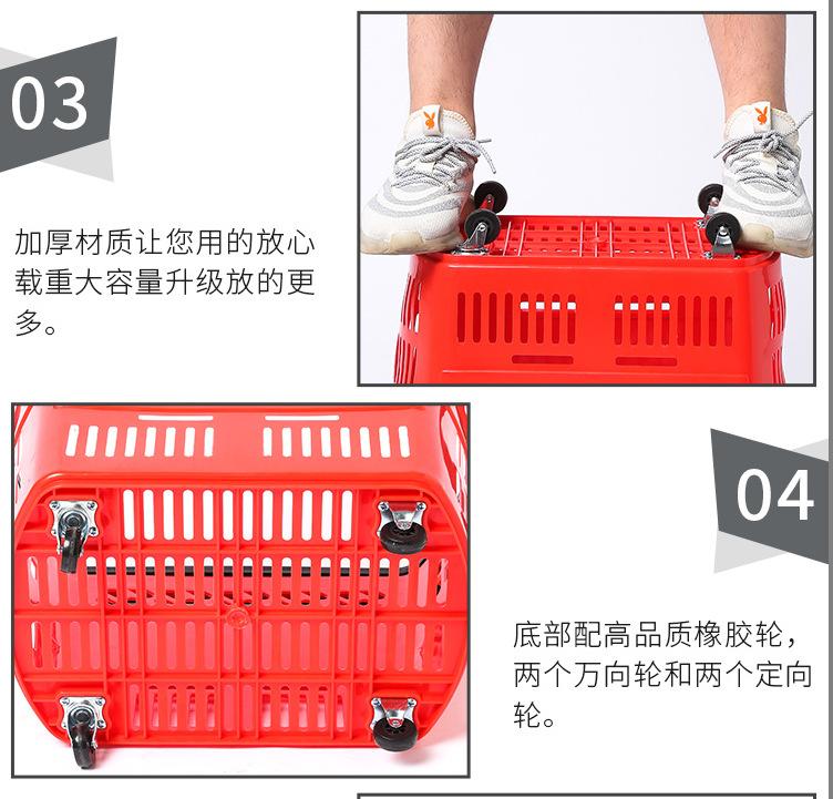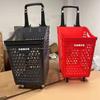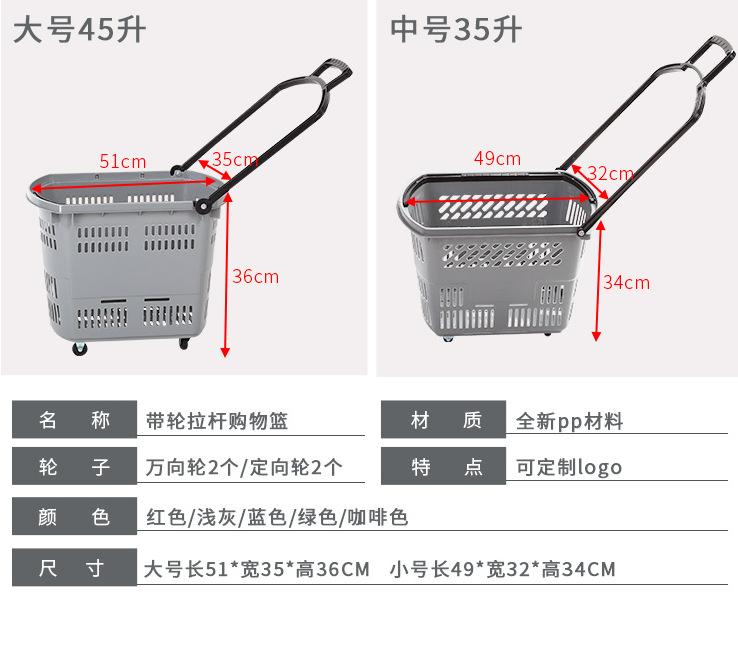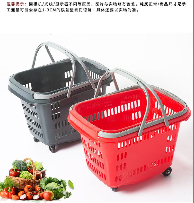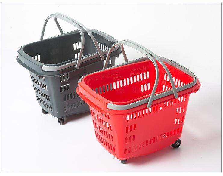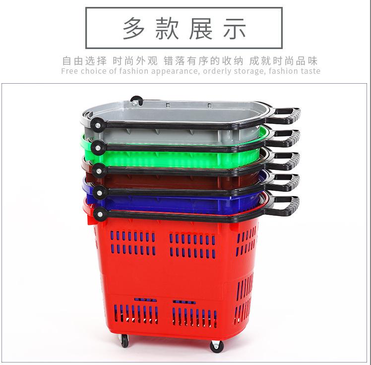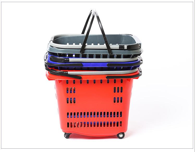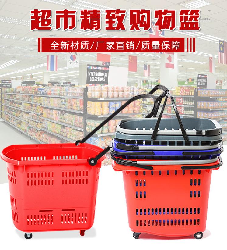 Cesta de supermercado con ruedas, cesta de compras para aperitivos, tienda de conveniencia, cesta de plástico azul grande y gruesa, cesta de mano