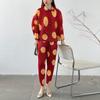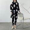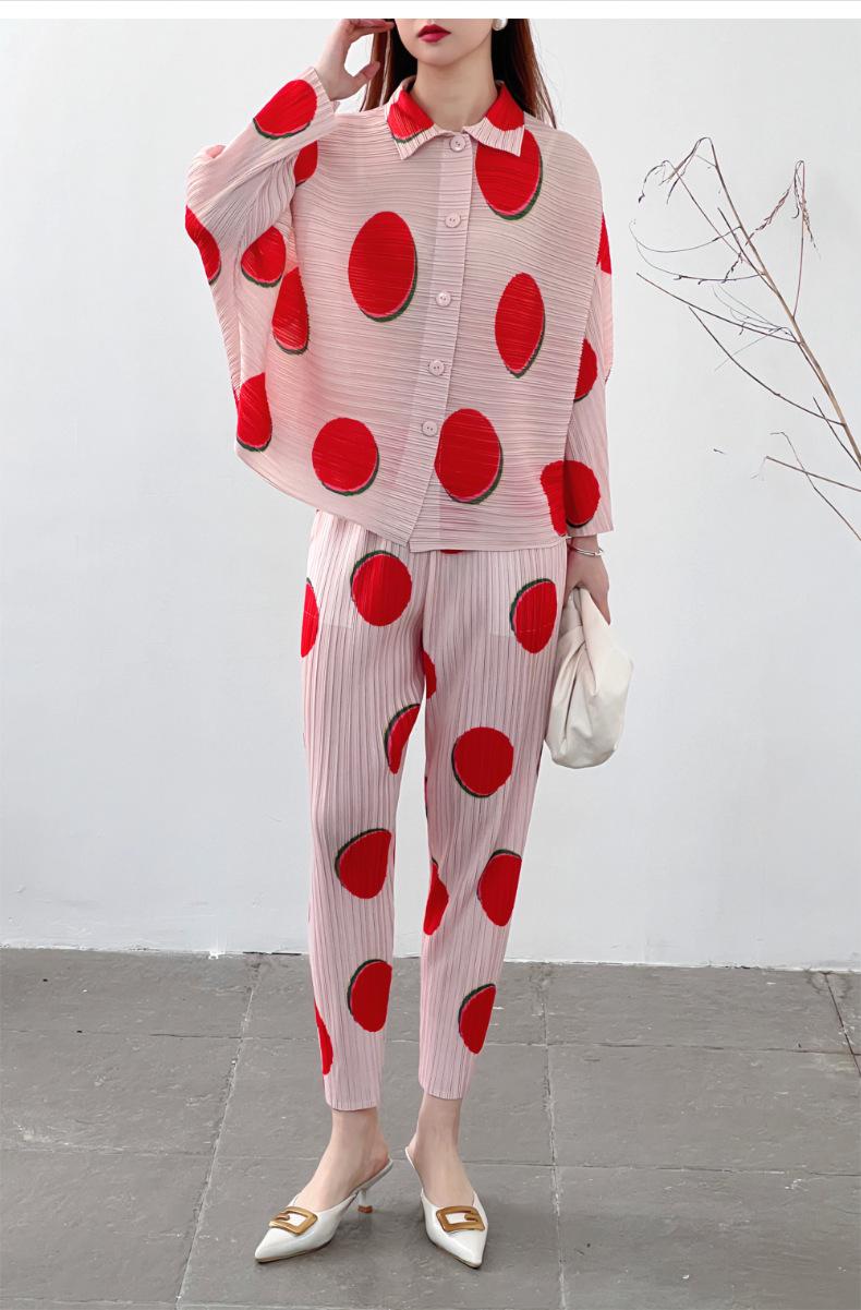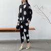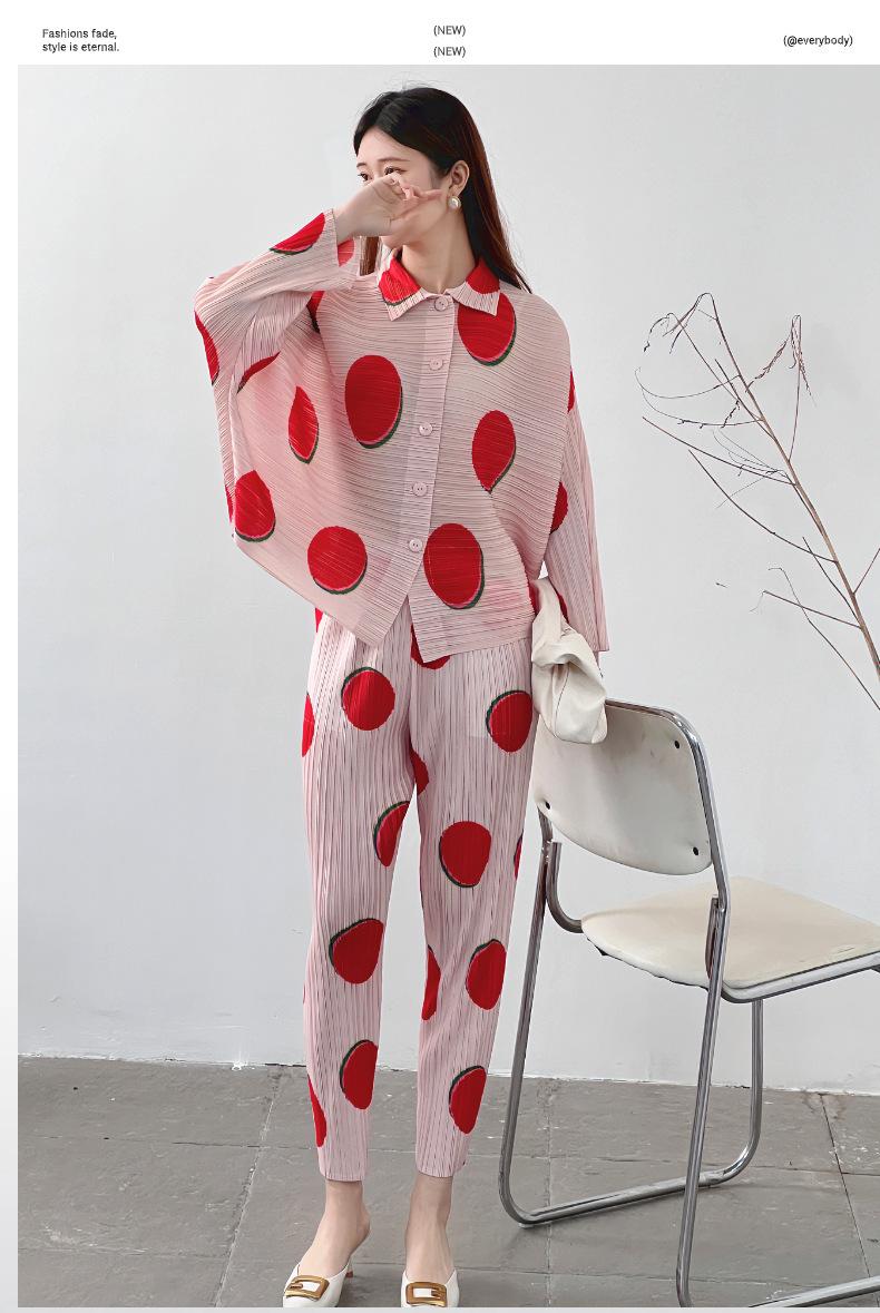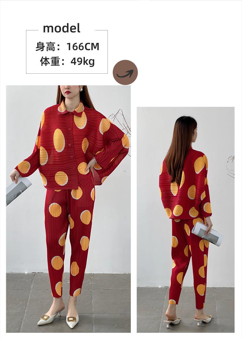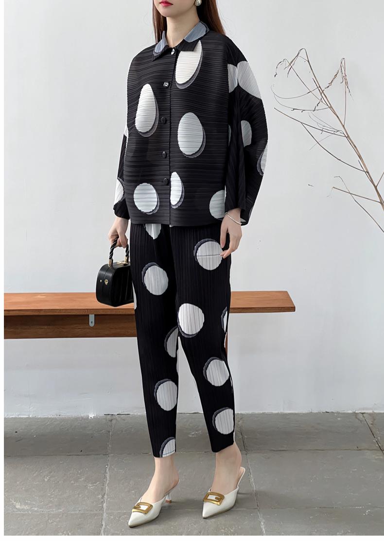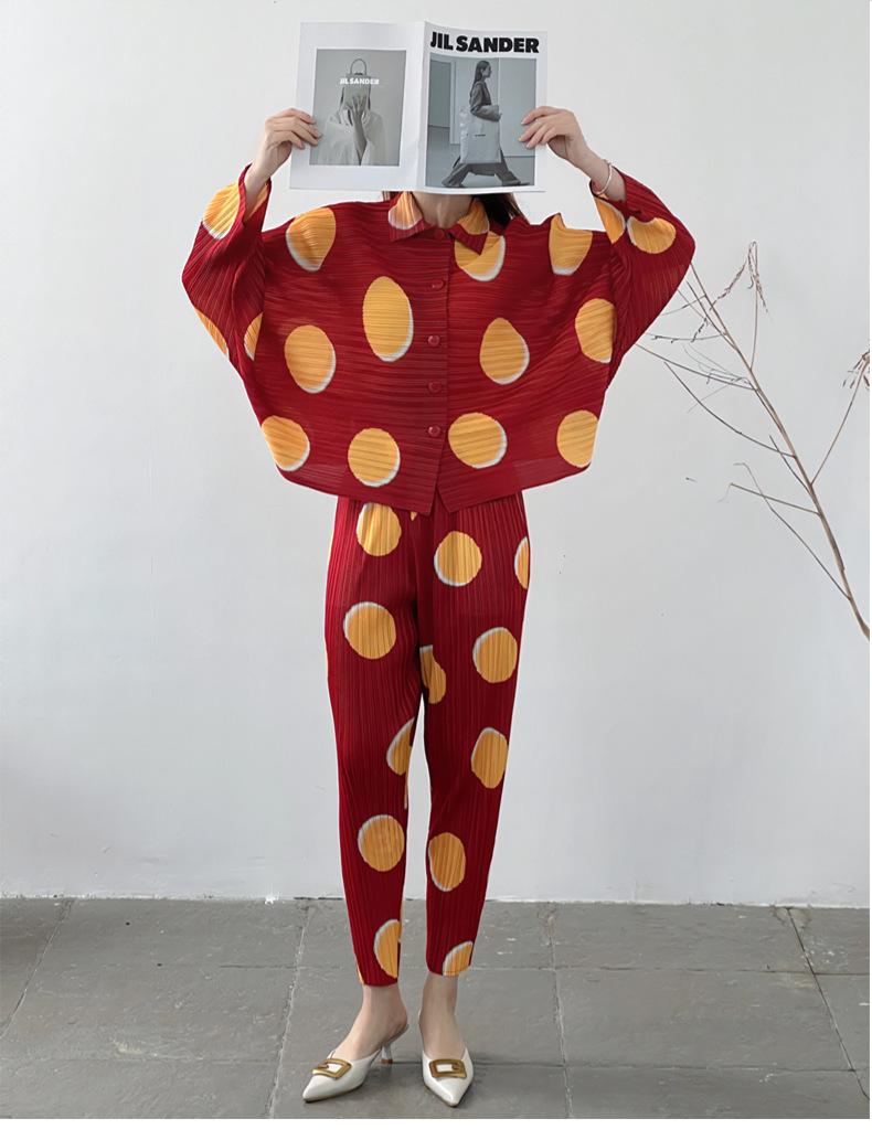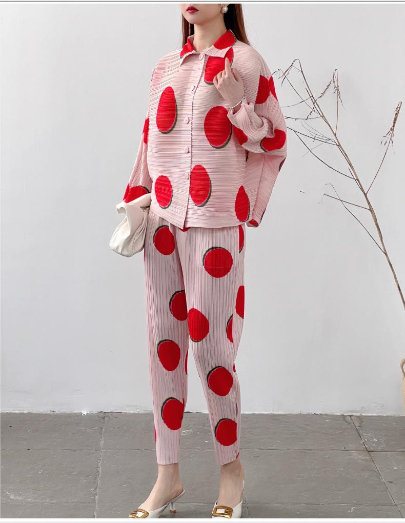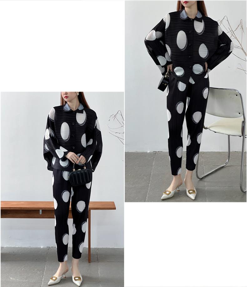 Venta directa de fábrica 2024 primavera plisado estampado lunares traje de moda temperamento antiedad nuevo conjunto de dos piezas para mujeres