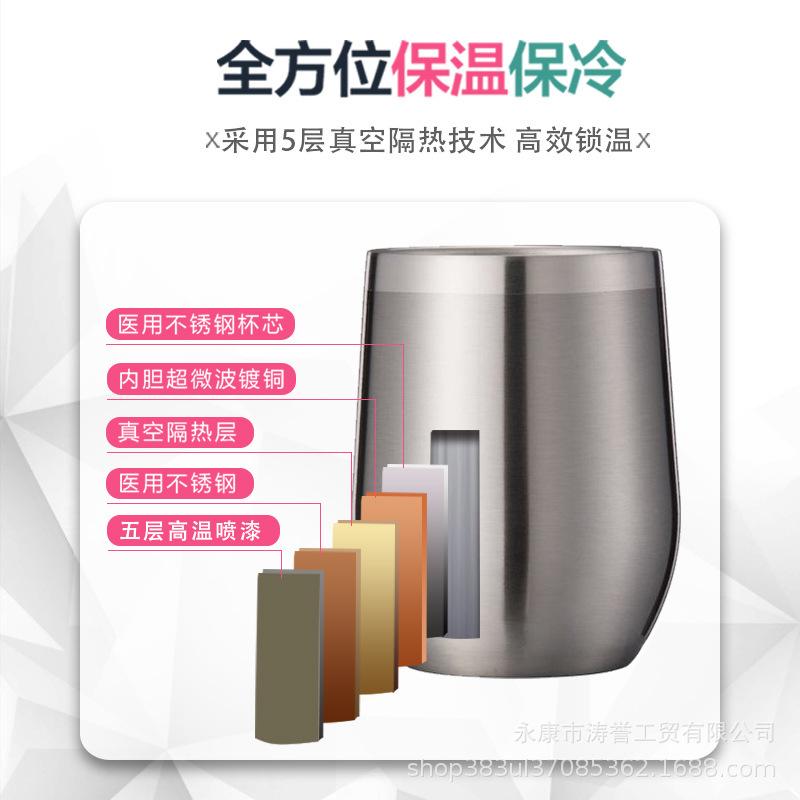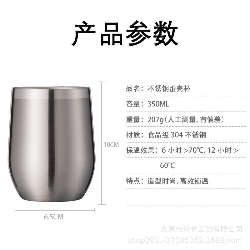 Taza de cáscara de huevo de Amazon Hot 304 de acero inoxidable con pulverizador al vacío en forma de U para café, vino tinto y termo.