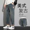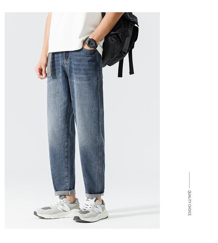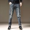 Jeans de Primavera y Otoño para Hombre, Sueltos Cónicos Rectos de Calle Trendy Forrados de Felpa Casuales de Cintura Media Pantalones Largos Versátiles