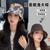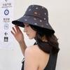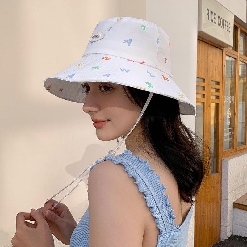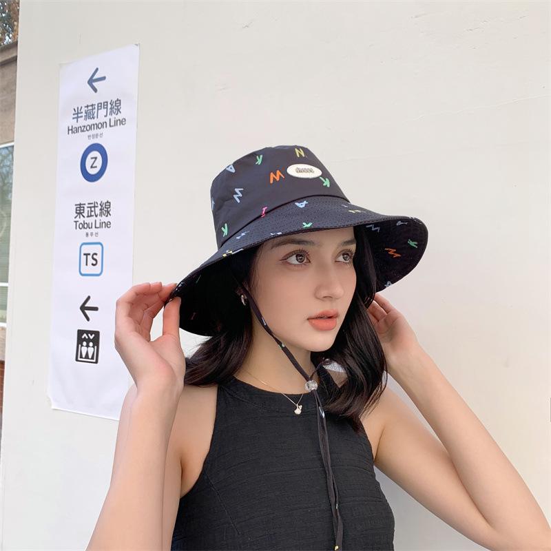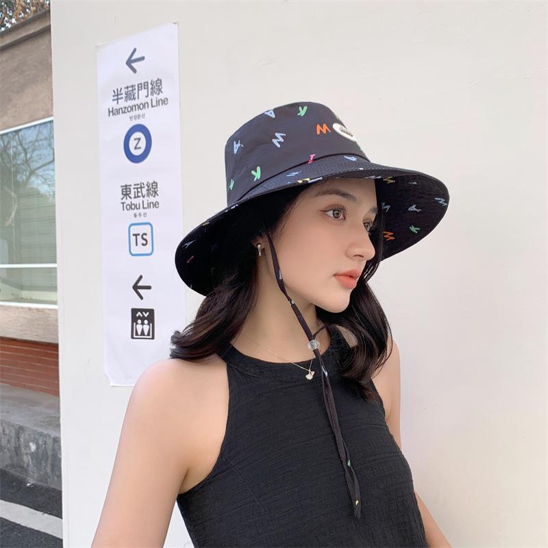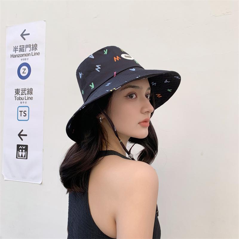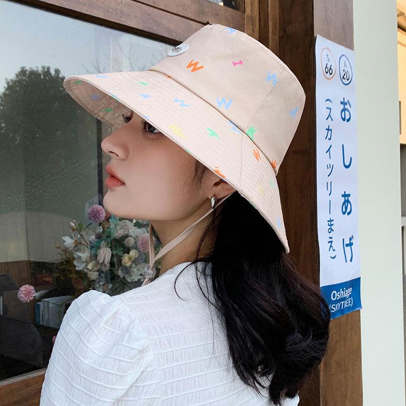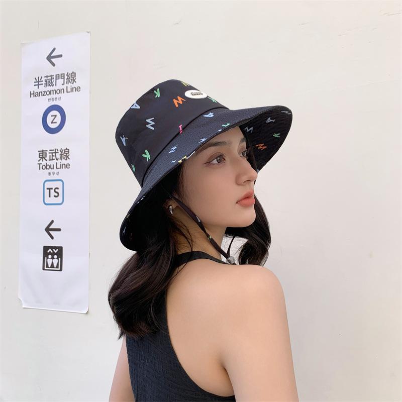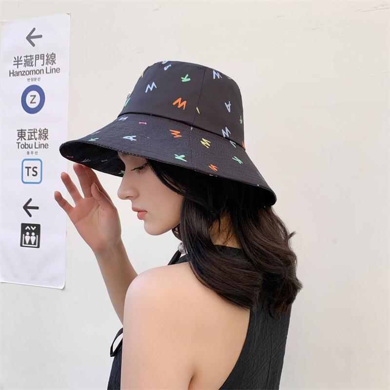 Sombrero de pescador estilo coreano para primavera y verano, bonito sombrero con grafiti de letra W y M, con ala grande y protección solar, para mujer, sombrero de pesca portátil para exteriores.