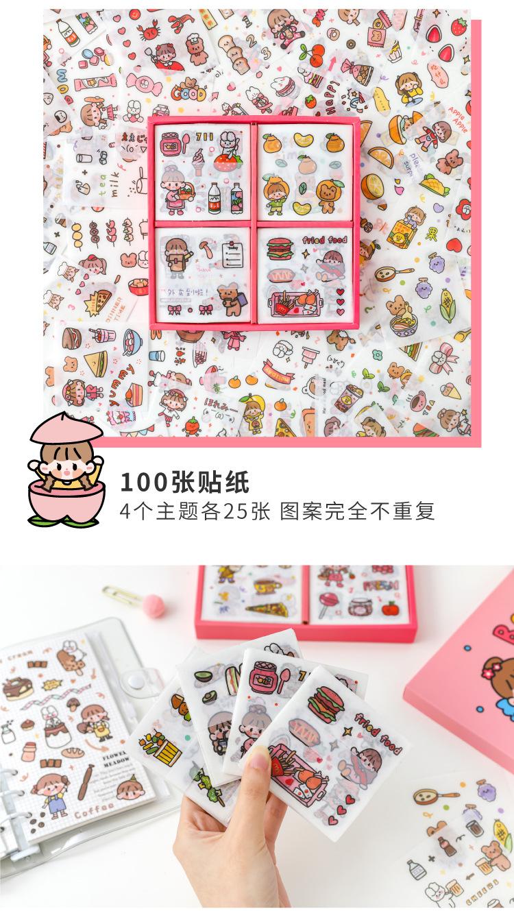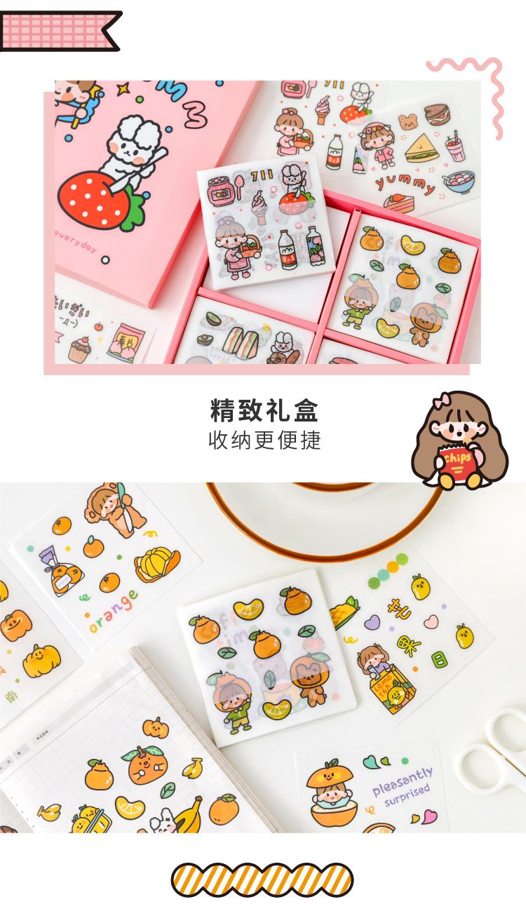 Caja de regalo con pegatinas de papel teñido, serie Gourmet Suave, creativa, con dibujos animados, cuenta manual, caja de regalo con pegatinas decorativas, individual