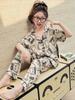 Pijamas para niños de clase A, verano 2024, nuevos, finos, para estudiantes, niñas, con estampado completo de dibujos animados, seda de hielo, ropa de casa, traje de tres piezas