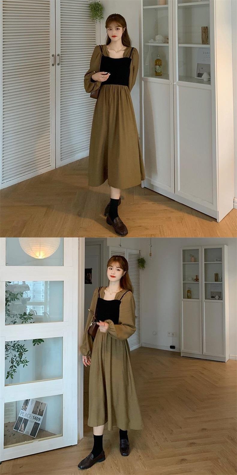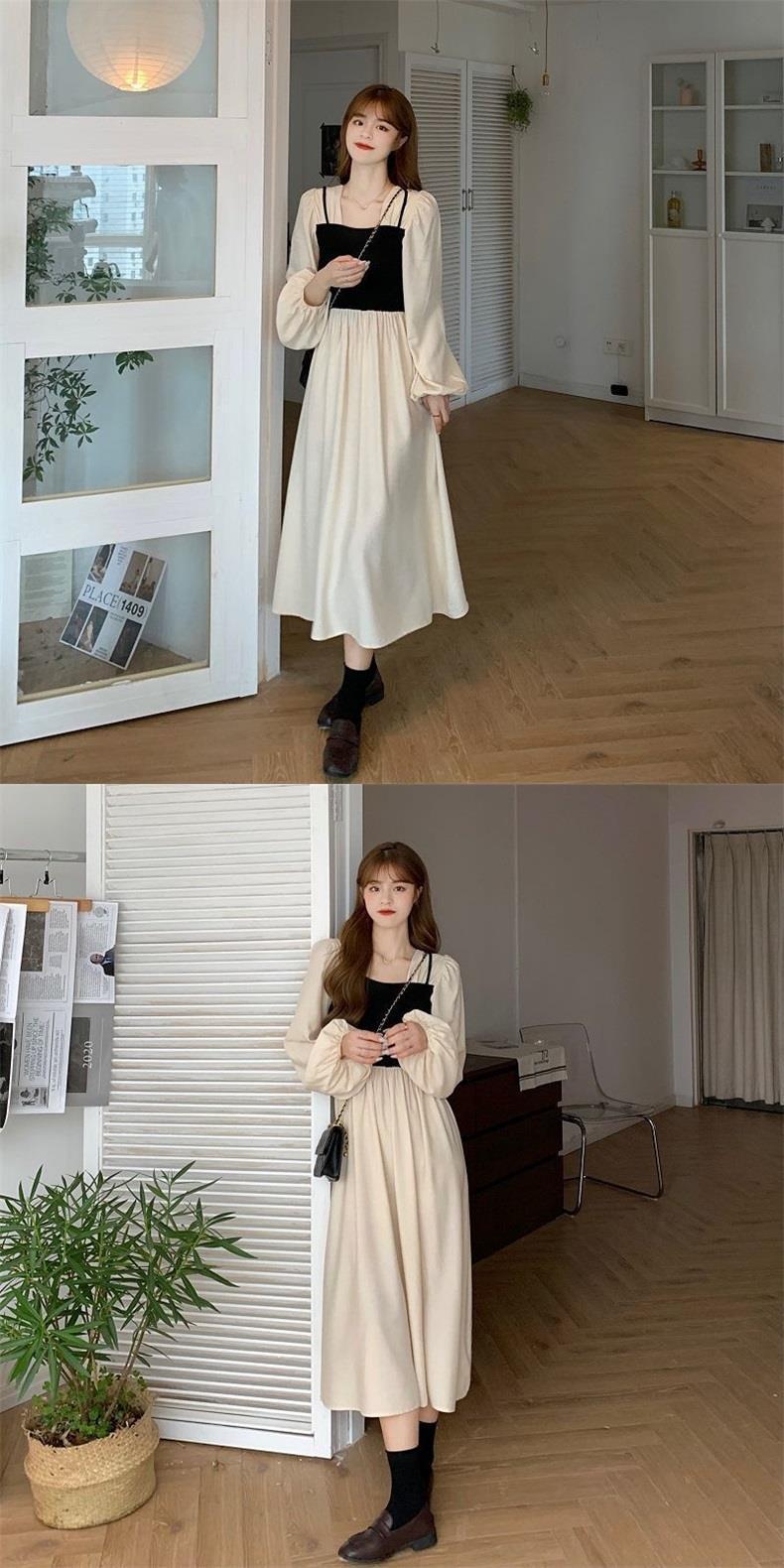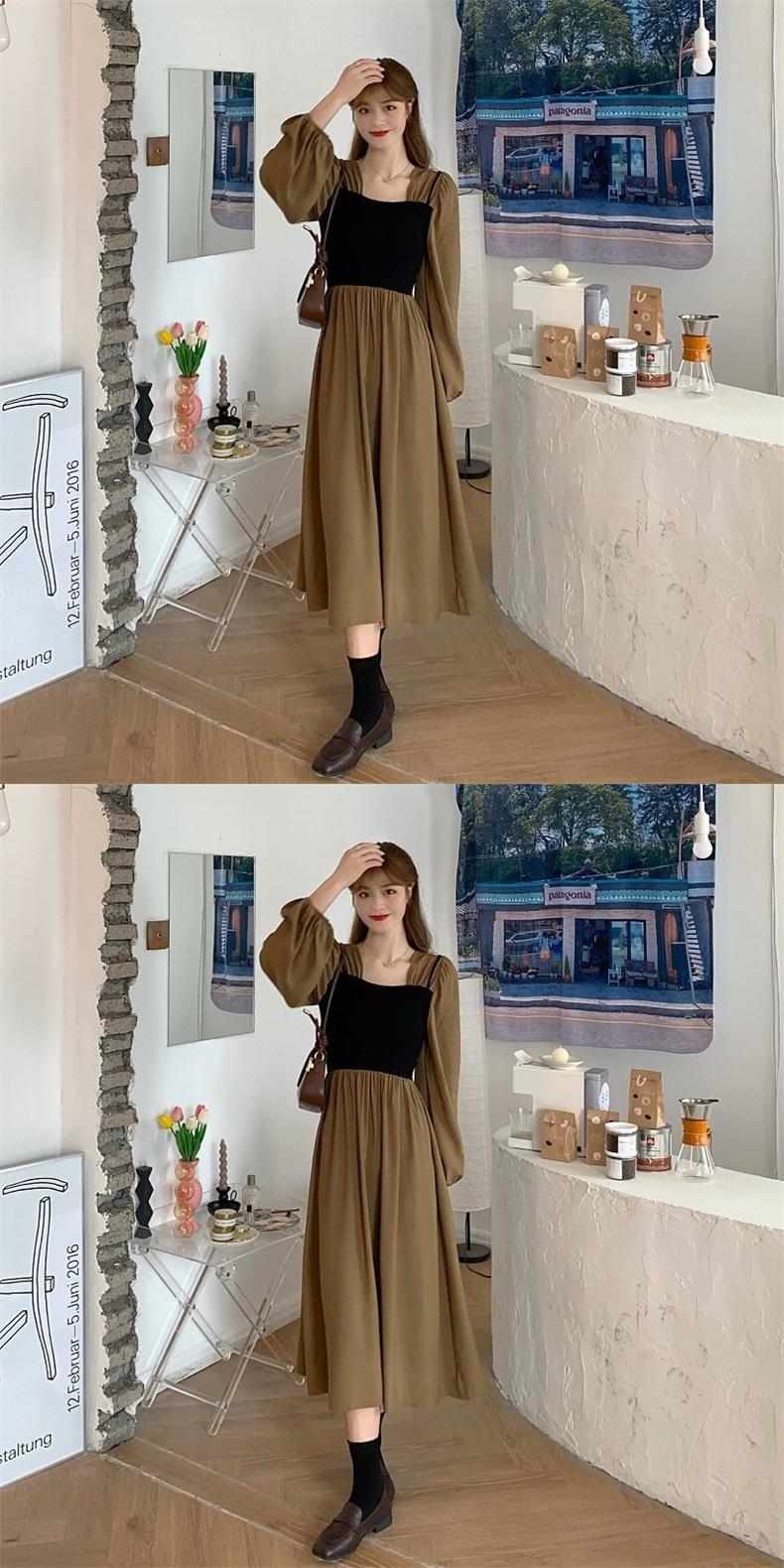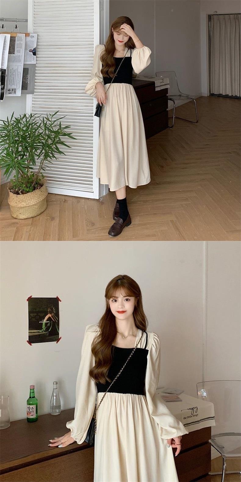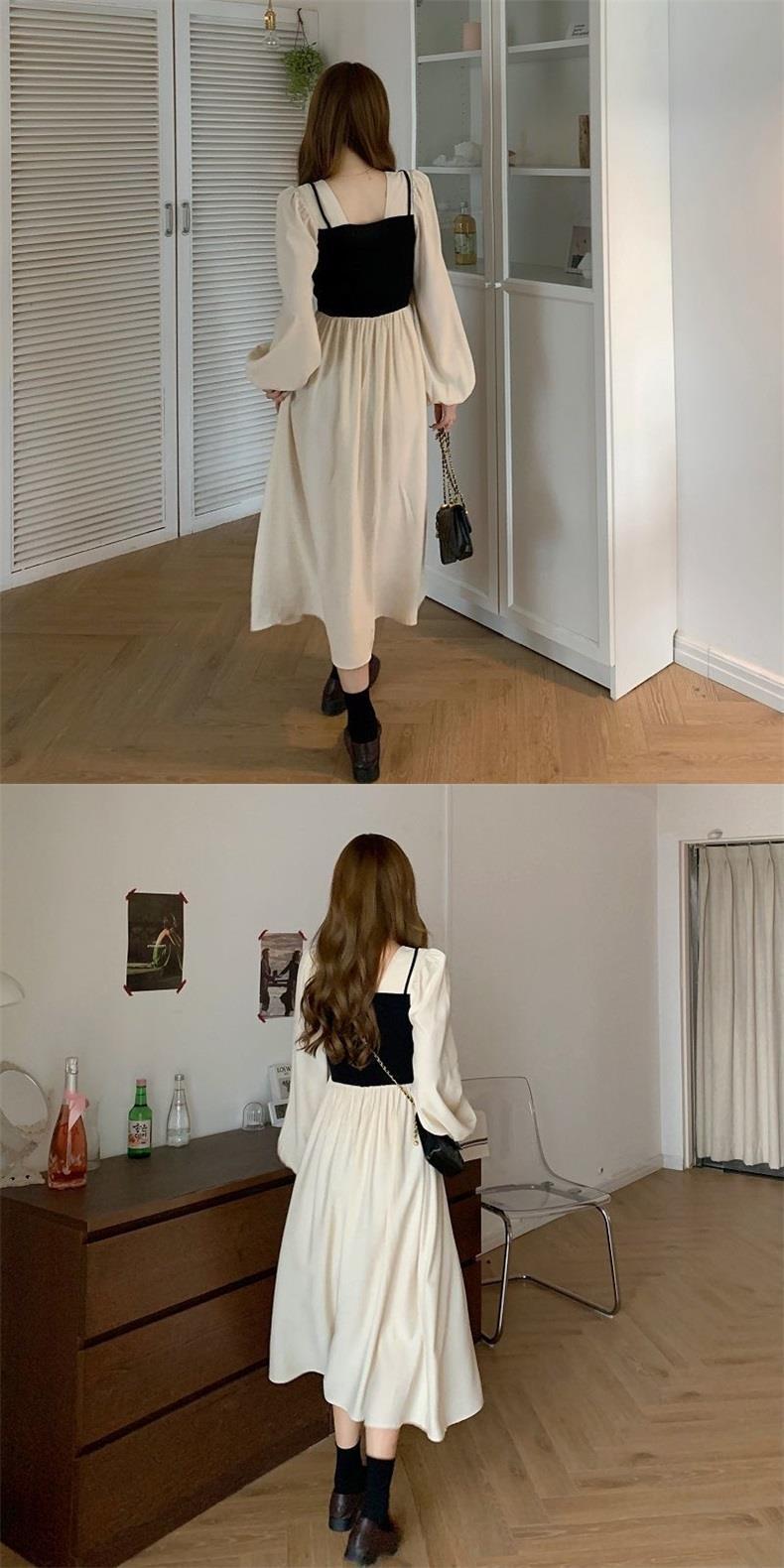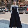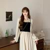 Vestido de cuello cuadrado francés de dos piezas falso, ropa de mujer, primavera y otoño 2022, nuevo diseño retro, falda larga pequeña